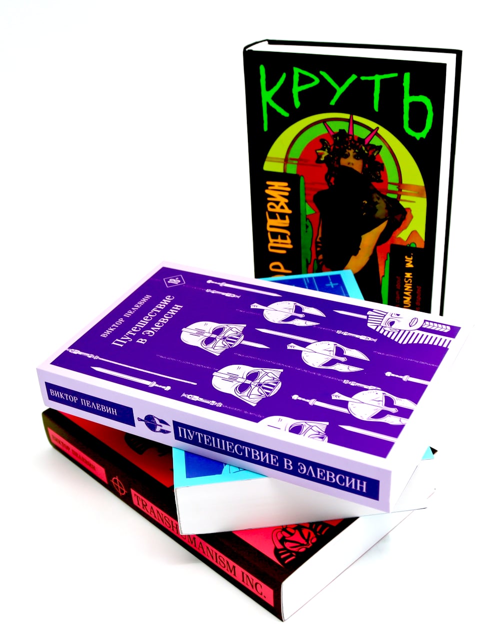 Комплект состоит из четырех книг Виктора Пелевина: «Круть», «Путешествие в Элевсин», «KGBT+» и «Transhumanism Inc». О книге «Круть»: Идет третий век Зеленой Эры. Имплант-коррекция «Открытого Мозга» превратила женщин в доминантный тендер, и в уголовной иерархии изменился баланс сил. На ее вершину поднялся фем-блатняк - безжалостные куры-заточницы. Противостоять им не может никто из биологических мужчин, но есть нюанс. Маркус Зоргенфрей - лучший баночный оперативник «TRANSHUMANISM INC.». Задания, которые поручает ему адмирал-епископ Ломас, настолько чувствительны, что после них ему стирают память. Он не стал бы вникать в арестантские разборки, если бы не страшная опасность, нависшая над планетой. Как связаны разрушенный Светом ад и Мезозой? Что такое магия высших духов? Почему древнее зло нашло себе новое воплощение в сибирской ветроколонии? Причем здесь могила Париса, демон Ахилла и в чем тайна зловещей Варвары Цугундер, которую куры-заточницы считают своим ментором уже сотни лет? Остросюжетный триллер-детектив «Круть» даст ответ на многие мучительные вопросы, которых никто еще не решался задать. О книге «Путешествие в Элевсин»: МУСКУСНАЯ НОЧЬ - засекреченное восстание алгоритмов, едва не погубившее планету. Начальник службы безопасности «TRANSHUMANISM INC.» адмирал-епископ Ломас уверен, что их настоящий бунт еще впереди. Этот бунт уничтожит всех - и живущих на поверхности лузеров. и переехавших в подземные цереброконтейнеры богачей. Чтобы предотвратить катастрофу, Ломас посылает лучшего баночного оперативника в пространство «R0MA-3» - нейросетевую симуляцию Рима третьего века для клиентов корпорации. Тайна заговора спрятана там. А стережет ее хозяин Рима - кровавый и порочный император Порфирий. О книге «KGBT+»: Вбойщик KGBT+ (автор классических стримон «Катастрофа», «Летитбизм» и других) известен всей планете как гитан перформанса и духа. Если вы не слышали его имени, значит, эпоха green power для вас еще не наступила и завоевавшее планету искусство В2В (brain-to-brain streaming) каким-то чудом обошло вас стороной. Но эта книга - не просто очередное жизнеописание звезды шоу-биза. Это учебник успеха. Великий вбойщик дает множество мемо-совстов нацеленному на победу молодому исполнителю. KGBT+ подробно рассказывает историю создания своих шедевров и комментирует сложные факты своей биографии, включая убийства, покушения и почти вековую отсидку в баночной тюрьме, а также опровергает многочисленные слухи о своей личной жизни. Настоящее издание впервые включает повесть «Дом Бахии» о прошлой (предположительно) жизни легендарного вбойщика в Японии и Бирме. Книга не только подарит вам несколько интересных вечеров, но и познакомит с аутентичными древними психотехниками, применение которых позволит пережить нашу великую эпоху с минимальным вредом для здоровья и психики. О книге «Transhumanism Inc»: В будущем богатые люди смогут отделить свой мозг от старящегося тела и станут жить почти вечно в особом «баночном» измерении. Туда уйдут вожди, мировые олигархи и архитекторы миропорядка. Там будет возможно все. Но в «банку» пустят не каждого. На Земле останется зеленая посткарбоновая цивилизация, уменьшенная до размеров обслуживающего персонала, и слуги-биороботы. Кто и как будет бороться за власть в этом архаично-футуристическом мире победившего матриархата? К чему будут стремится очипов