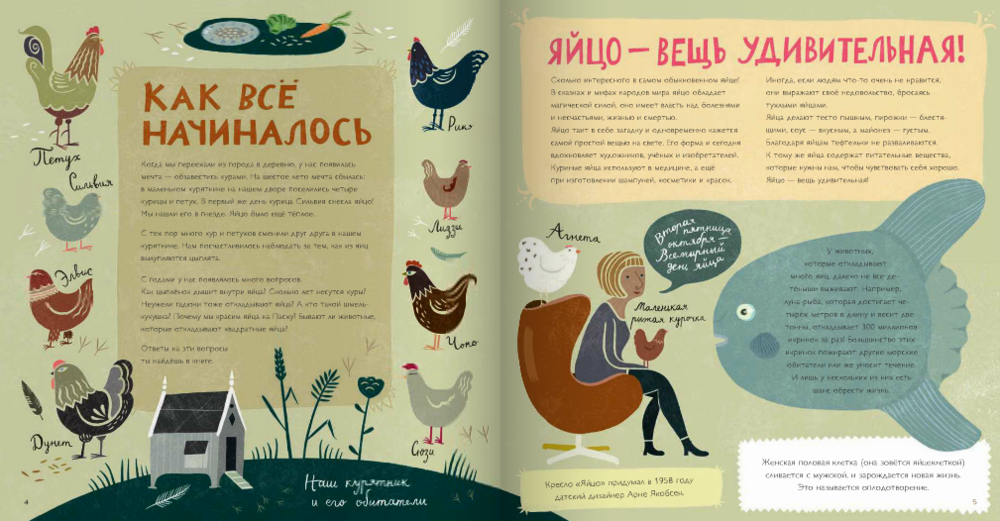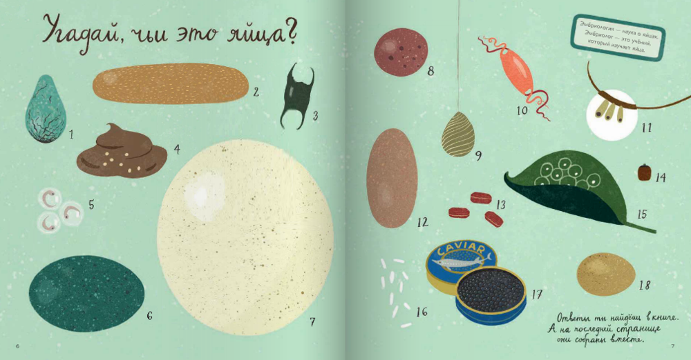 Познавательная книга не только для школьников, но и взрослых - об одной из двух частей известной дилеммы о курице и яйце. Хотя и курице, и другим птицам в книге тоже уделено немало внимания. Что такое яйцо, что происходит внутри него, у каких живых существ они встречаются, для чего нужны, что символизирует яйцо в разных культурах, какие есть традиции и приметы, и многие другие «крутые» сведения о яйцах.