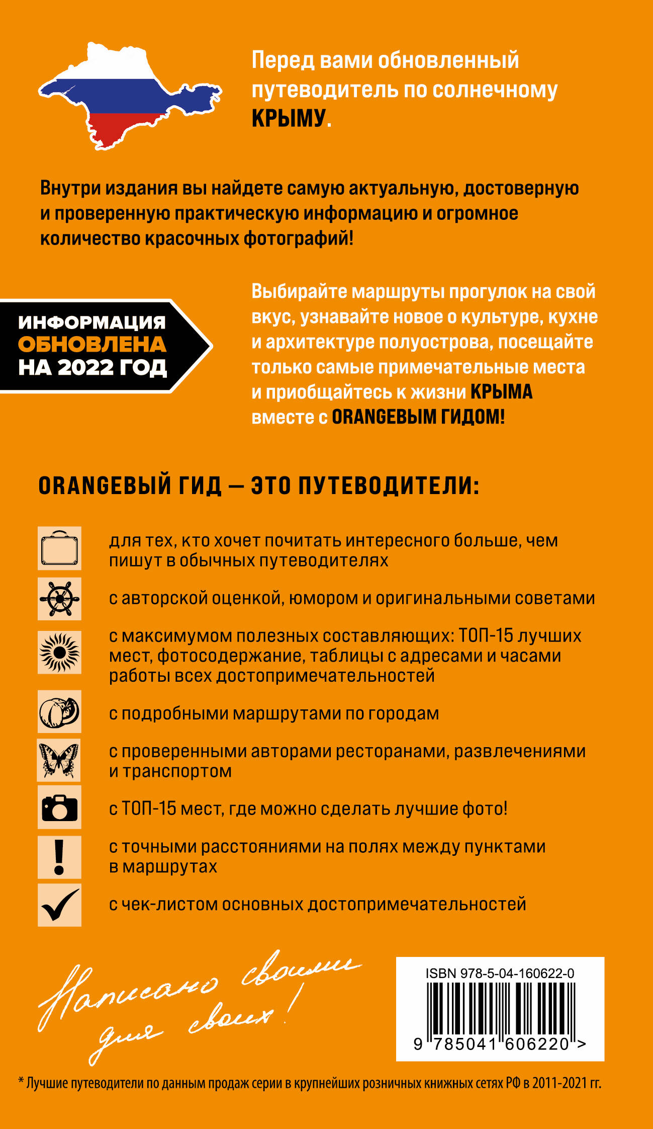 Абсолютно новый путеводитель по Крыму! Внутри содержится информация о таких городах полуострова, как Ялта, Симферополь, Судак, Алушта, Севастополь, Евпатория, Феодосия, Керчь и др. Богатый выбор маршрутов путешествий даже для самых искушенных туристов. На полях внутри книги вы найдете точные расстояния между предложенными для прогулки объектами, чтобы вы смогли рассчитать свои силы и успеть все, что запланировали. Информация полностью обновлена в 2022 году.| Издательство | Эксмо |