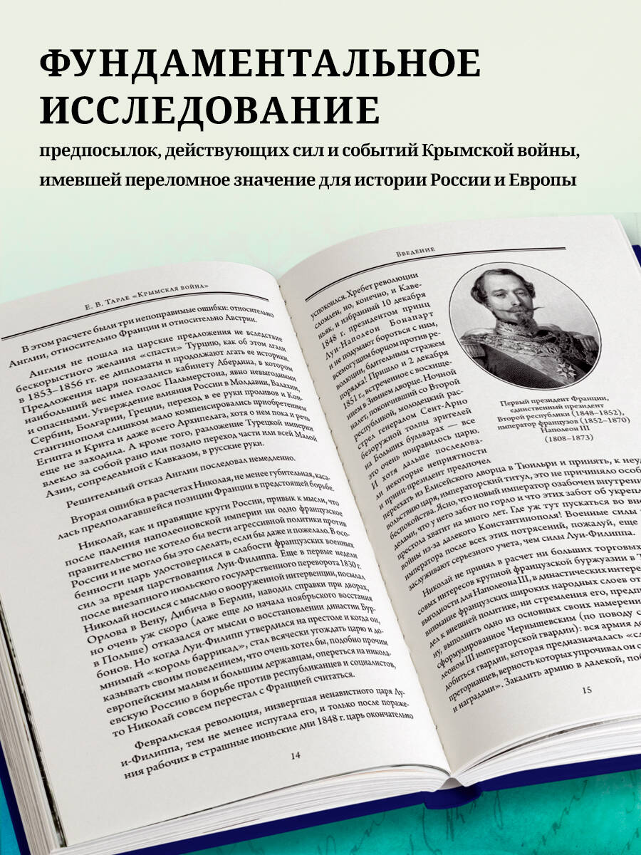 Это коллекционное издание продолжает собрание сочинений известного советского историка, академика Евгения Викторовича Тарле (1874-1955). Блестящий педагог, он обладал незаурядным для ученого литературным талантом, оставаясь при этом авторитетнейшим специалистом в российской исторической науке, всецело преданным исторической правде. Популяризаторский стиль, живой язык и повествовательный динамизм в сочетании со строгим, педантичным следованием фактам ставят его работы в один ряд с трудами великого Н. М. Карамзина, В. О. Ключевского, Н. И. Костомарова. Во втором томе собрания сочинений представлена первая часть монографии «Крымская война» - фундаментального труда Е. В. Тарле, ставшего первым в советской историографии крупным научным исследованием поистине мировой войны, которая в русской традиции чаще называется Крымской, а в иностранной литературе - Восточной. Крымская война (1853-1856) имела важное историческое значение как для России, так и для всей Европы. В первом томе монографии анализируются предпосылки и причины этой войны, отношения между Россией и европейскими державами и дипломатический климат эпохи, силы сторон; широко освещены Дунайская и Кавказская кампании. Серия «Подарочные издания. Тарле Е.В. Юбилейное собрание сочинений» - это эксклюзивная книжная коллекция, приуроченная к 150-летию со дня рождения знаменитого советского историка Евгения Викторовича Тарле. В серию вошли ключевые труды академика Е. В. Тарле: «Наполеон», «Нашествие Наполеона на Россию», «Крымская война» - эти и другие работы, представленные в серии, были и остаются блестящими образцами русской исторической мысли. Собрание сочинений станет украшением библиотеки самого взыскательного коллекционера и любителя редких изданий.| Издательство | ООО "Издательство "Эксмо" |