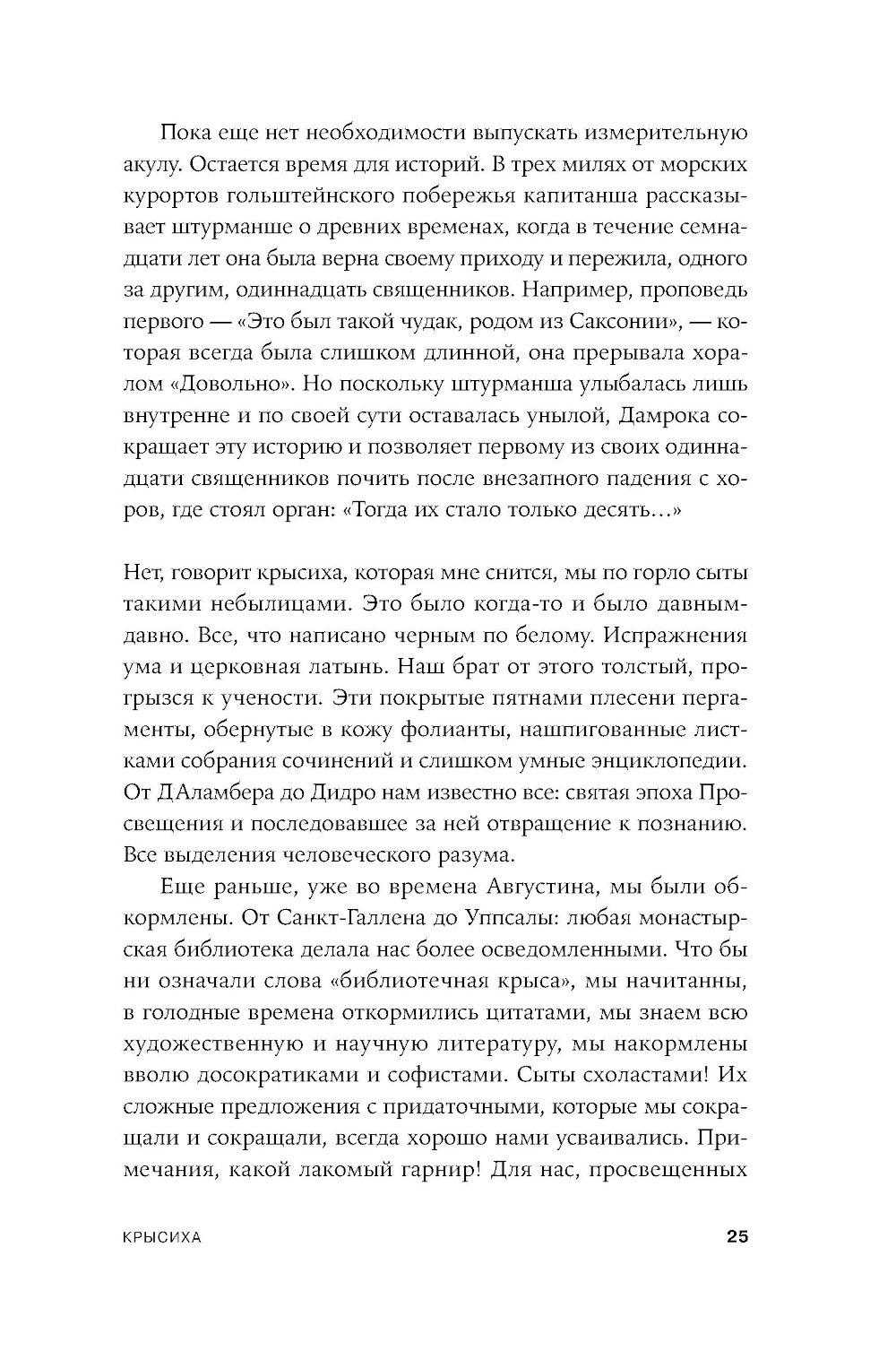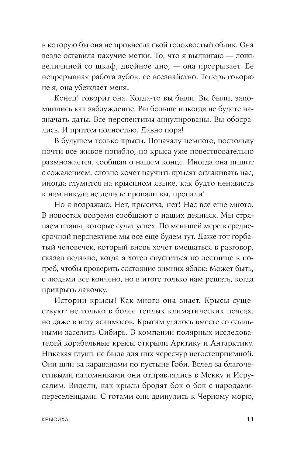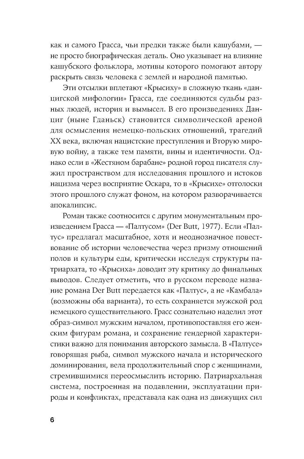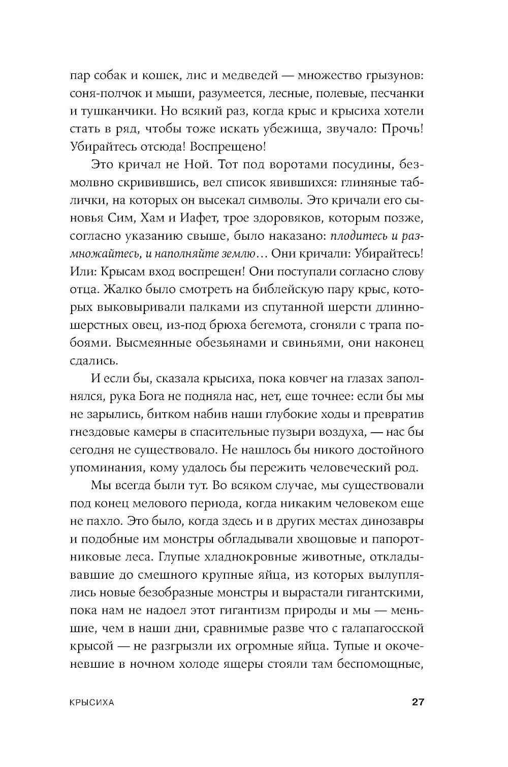 Апокалиптический роман немецкого писателя Гюнтера Грасса, построенный на диалоге рассказчика с подаренной ему крысой. Он путешествует по опустошенной Земле, а она излагает ему историю гибели человечества и захвата власти на Земле крысами - единственными выжившими в Данциге после применения нейтронных бомб и построившими собственную цивилизацию, основанную на солидарности. Рассказчик спорит с новой картиной мира, выдвигая свои теории, которые становятся возможными сценариями для фильмов медиамагната, героя «Жестяного барабана» Оскара Мацерата: о художнике Лотаре Мальскате и проблеме подлинности, о мертвых лесах, о пяти женщинах, которые отправляются исследовать местную популяцию медуз в Балтийском море и тайно ищут легендарную Винету как место женской утопии.| Издательство | Альпина нон-фикшн |