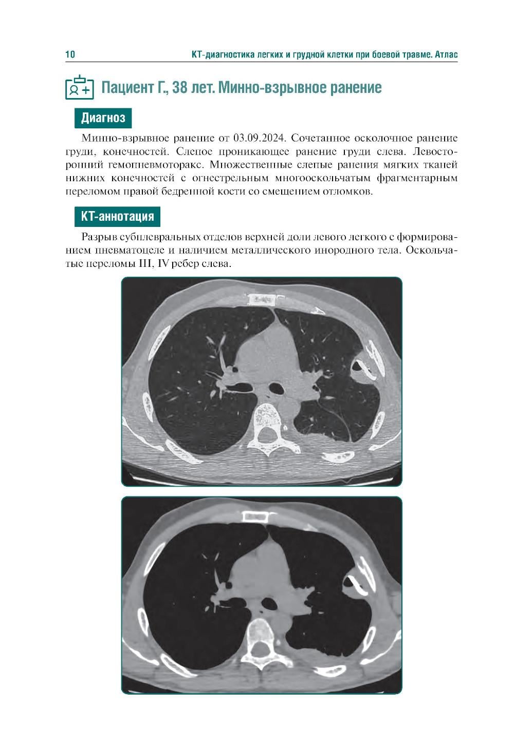 Аннотация: КТ-признаки поражения легких и грудной клетки при боевой травме: атлас