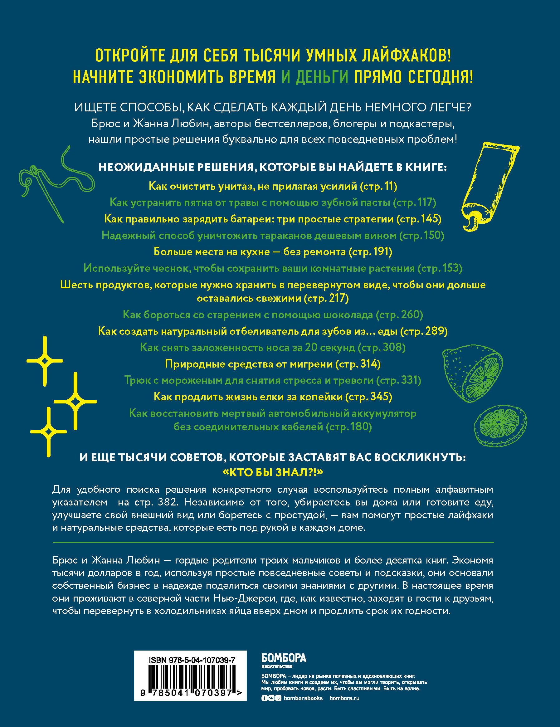 Аннотация: КТО БЫ ЗНАЛ?! 10 001 умное решение для вашего дома: как спасти любимые вещи, отмыть кухню натуральными чистящими средствами, реанимировать старый аккумулятор и другие простые лайфхаки для тех, кто хочет сэкономить