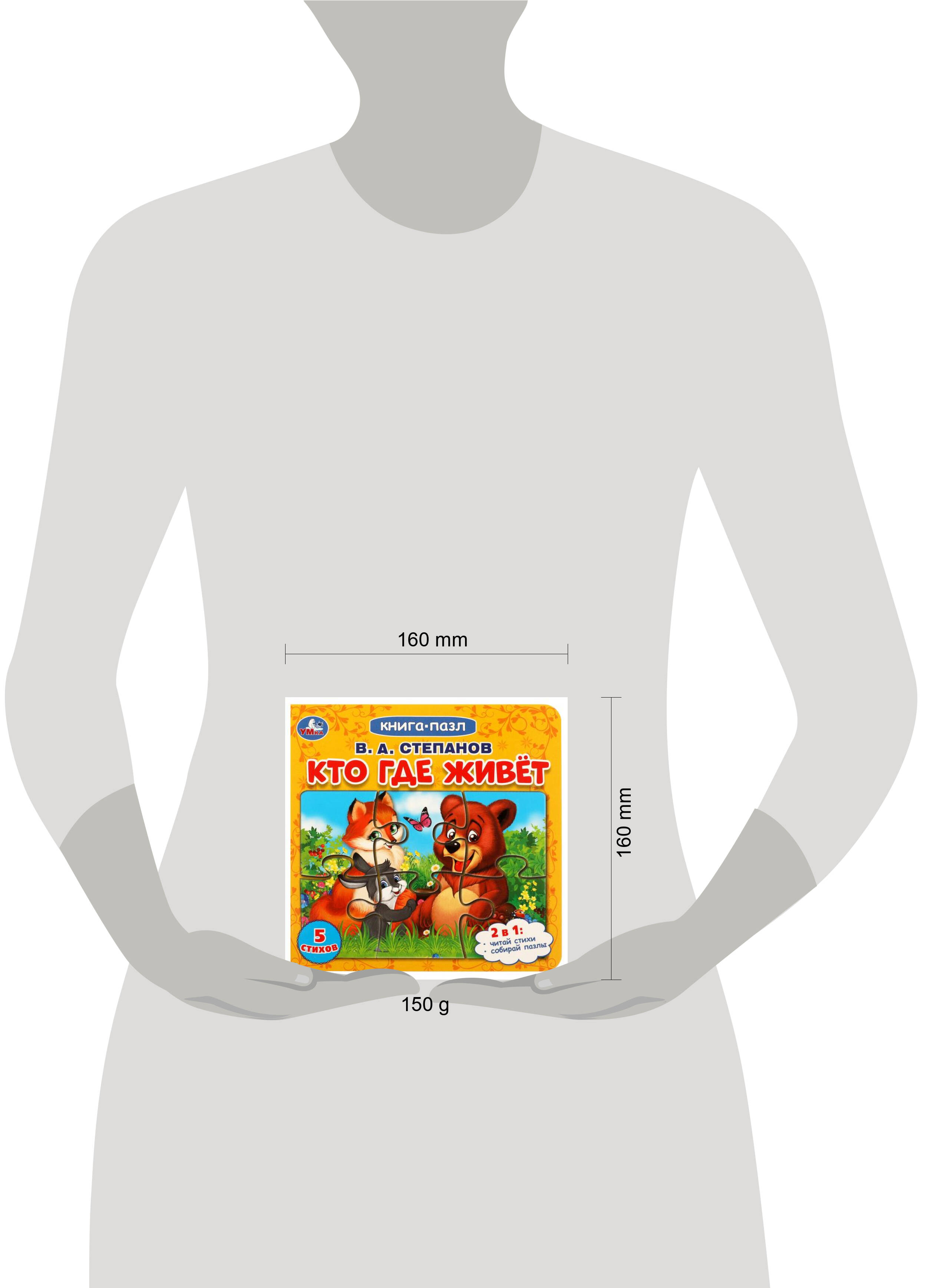Аннотация: Кто где живет. Степанов В.А. Картонная книга с 5 пазлами. 160х160 мм. 10 стр. Умка в кор.28шт