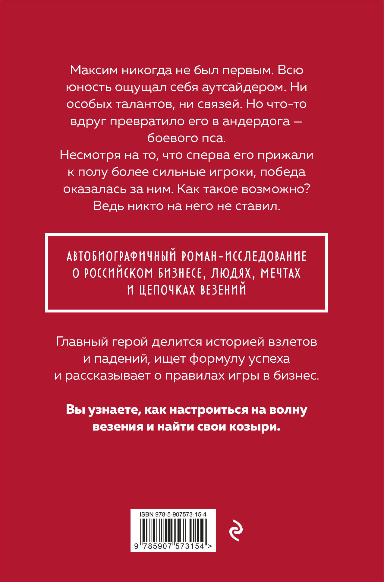 Максим никогда не был первым. Всю юность ощущал себя аутсайдером. Ни особых талантов, ни связей. Но что-то вдруг превратило его в андердога - боевого пса. Несмотря на то что сперва его прижали к полу более сильные игроки, победа оказалась за ним. Как такое возможно? Ведь никто на него не ставил. Это автобиографичный роман-исследование о российском бизнесе, людях, мечтах и цепочках везений. Главный герой делится историей взлетов и падений, ищет формулу успеха и рассказывает о правилах игры в бизнес. Вы узнаете, как настроиться на волну везения и найти свои козыри.