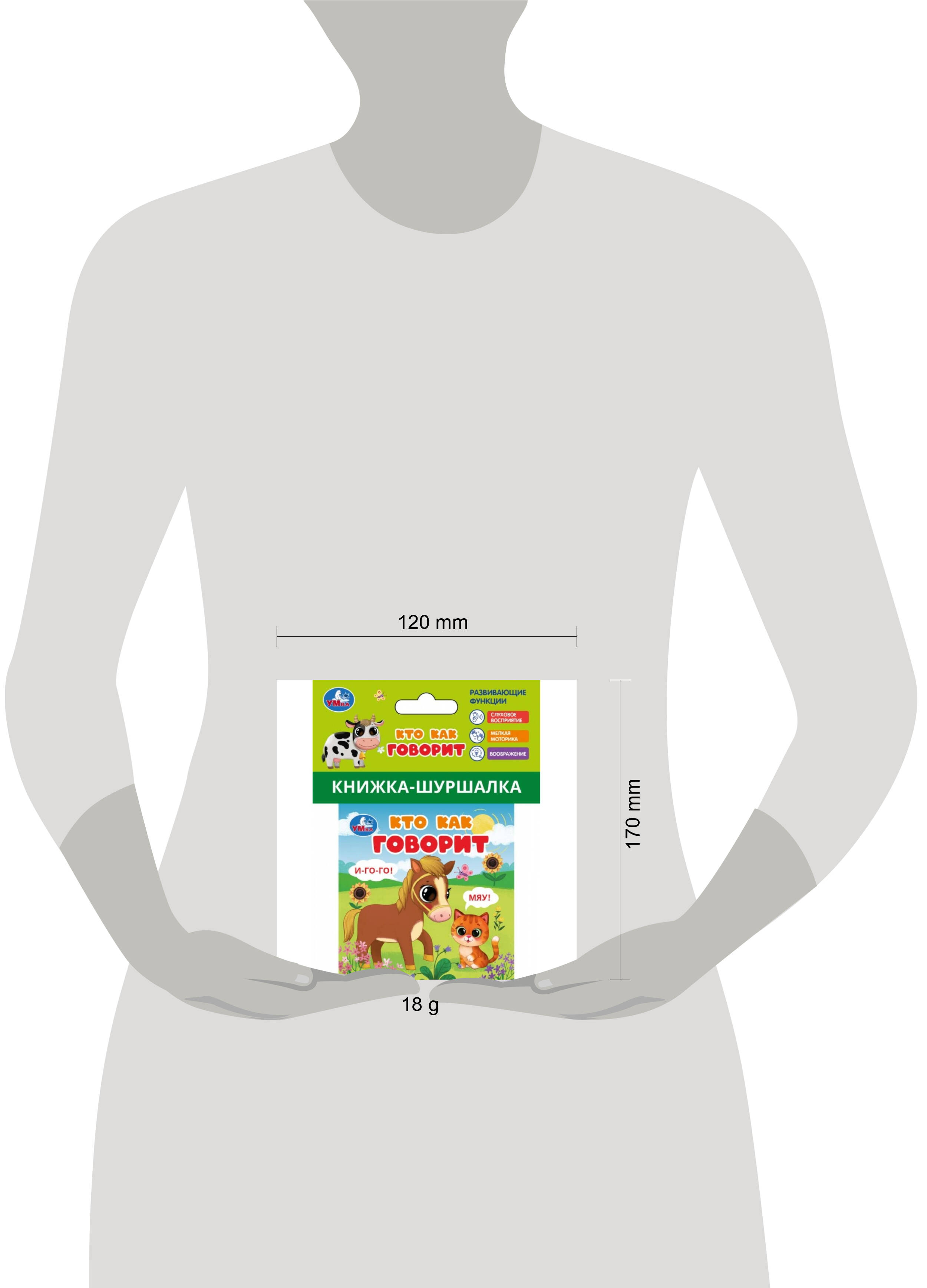 Книжка-шуршалка "Кто как говорит" ТМ "УМка" - отличный подарок для самых маленьких: - шуршащие страницы - красочное оформление - знакомство с окружающим миром: животные, их названия и звуки, которые они издают - удобный небольшой размер Мягкая книжка-шуршалка с милыми животными привлечёт внимание малыша, порадует его яркими картинками и будет способствовать развитию слухового и тактильного восприятия. Получение информации в такой игровой форме позволит быстрее и эффективнее усвоить новые знания, а также потренировать мелкую моторику. Благодаря компактному карманному размеру, книжку удобно брать повсюду с собой: она отлично помещается в женскую сумочку мамы или детский рюкзачок малыша. Игра с книжкой-шуршалкой ТМ "УМка" также развивает: - воображение и фантазию - внимание - образное мышление Объём: 8 стр. Формат: 85 х 85 мм. Состав: тканный материал. Рекомендованный возраст: 0+.| Издательство | С-Маркет ООО |