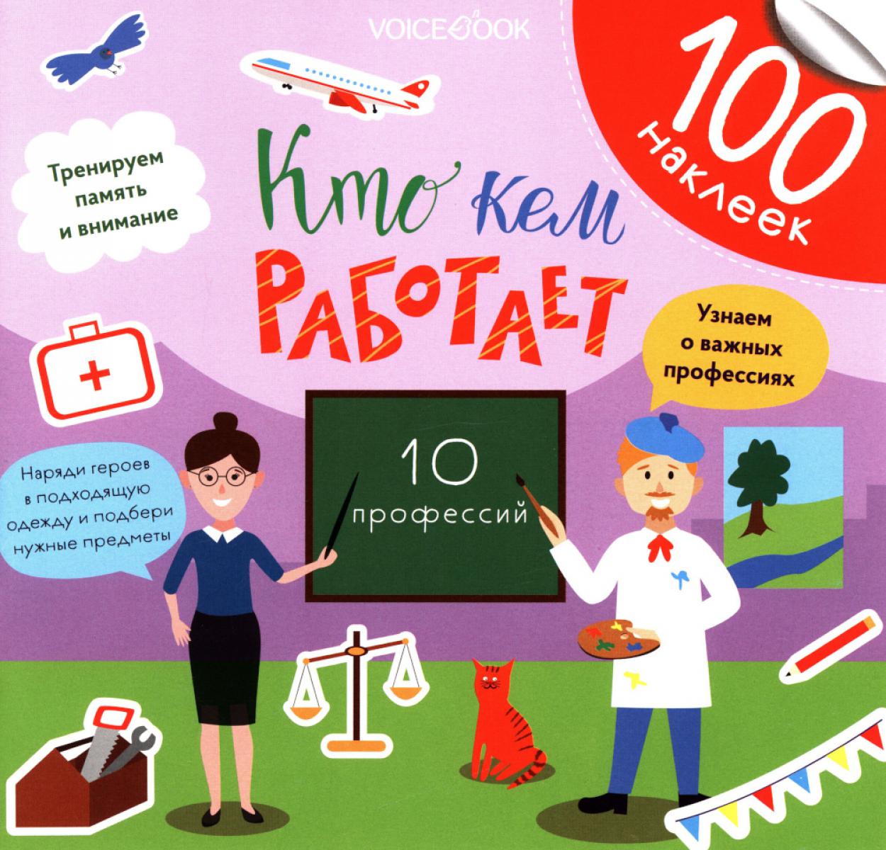 Под этой обложкой собрались представители 10 важных и увлекательных профессий, которые хотят немного рассказать о себе. Попробуйте догадаться, чем занимается тот или иной персонаж, впишите название его профессии в клеточки и помогите ему собраться на работу. Для этого мы подготовили для вас 100 наклеек с элементами гардероба, аксессуарами и инструментами.| Издательство | VoiceBook |