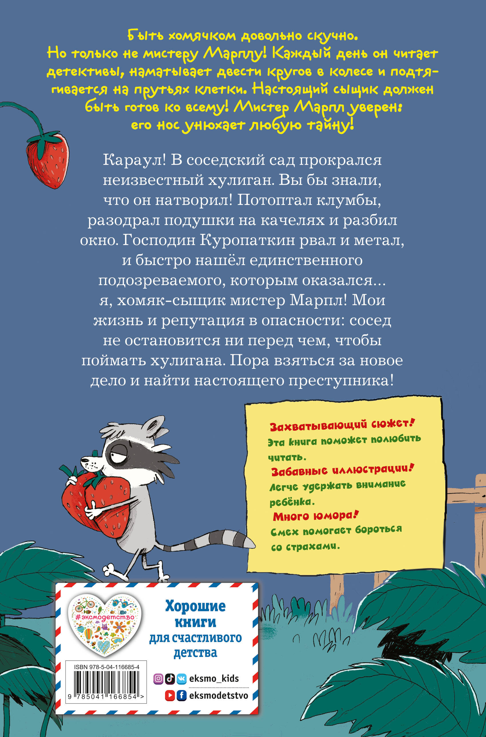 Кто до сих пор думает, что зверята не могут быть детективами? Давайте познакомимся: я, хомяк мистер Марпл, самый крутой сыщик на свете! На моём счету не одно раскрытое дело. И вот что стряслось на этот раз. Сосед Эльзы, моей помощницы, рвёт и мечет: в его сад пробрался хулиган! Неизвестный потоптал клумбы, разодрал подушки на качелях и даже разбил окно. Кто же мог сотворить такое? Кажется, пора браться за новое дело! Мистер Марпл - самый необычный сыщик на свете, ведь он маленький хомячок! Книга идеально подойдёт для первого самостоятельного чтения: много юмора, захватывающий сюжет, лёгкий слог. История дополнена забавными иллюстрациями, которые помогут удержать внимание ребёнка. В конце - полезные советы для начинающих сыщиков.| Издательство | Эксмо |