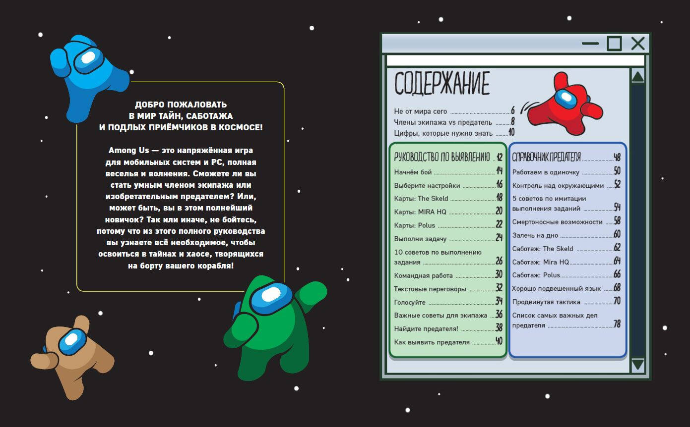 Книга отлично подойдёт поклонникам игры «Амонг Ас», которые хотят узнать о ней что-то новое и научиться играть лучше всех! Тсс… Хочешь уничтожить экипаж и остаться безнаказанным? Или научиться вычислять предателя по его мелким недочётам? Из этого путеводителя по популярной игре AMONG US вы узнаете всё необходимое, чтобы стать ЛУЧШИМ В МИРЕ ПРЕДАТЕЛЕМ! А также поймёте, как остаться в живых и РАСКРЫТЬ ПРЕДАТЕЛЯ. Здесь представлены все виды карт, питомцы, особенности чатов и собраний. Цветное оформление, увлекательная форма подачи.| Издательство | ООО "Издательство "Эксмо" |