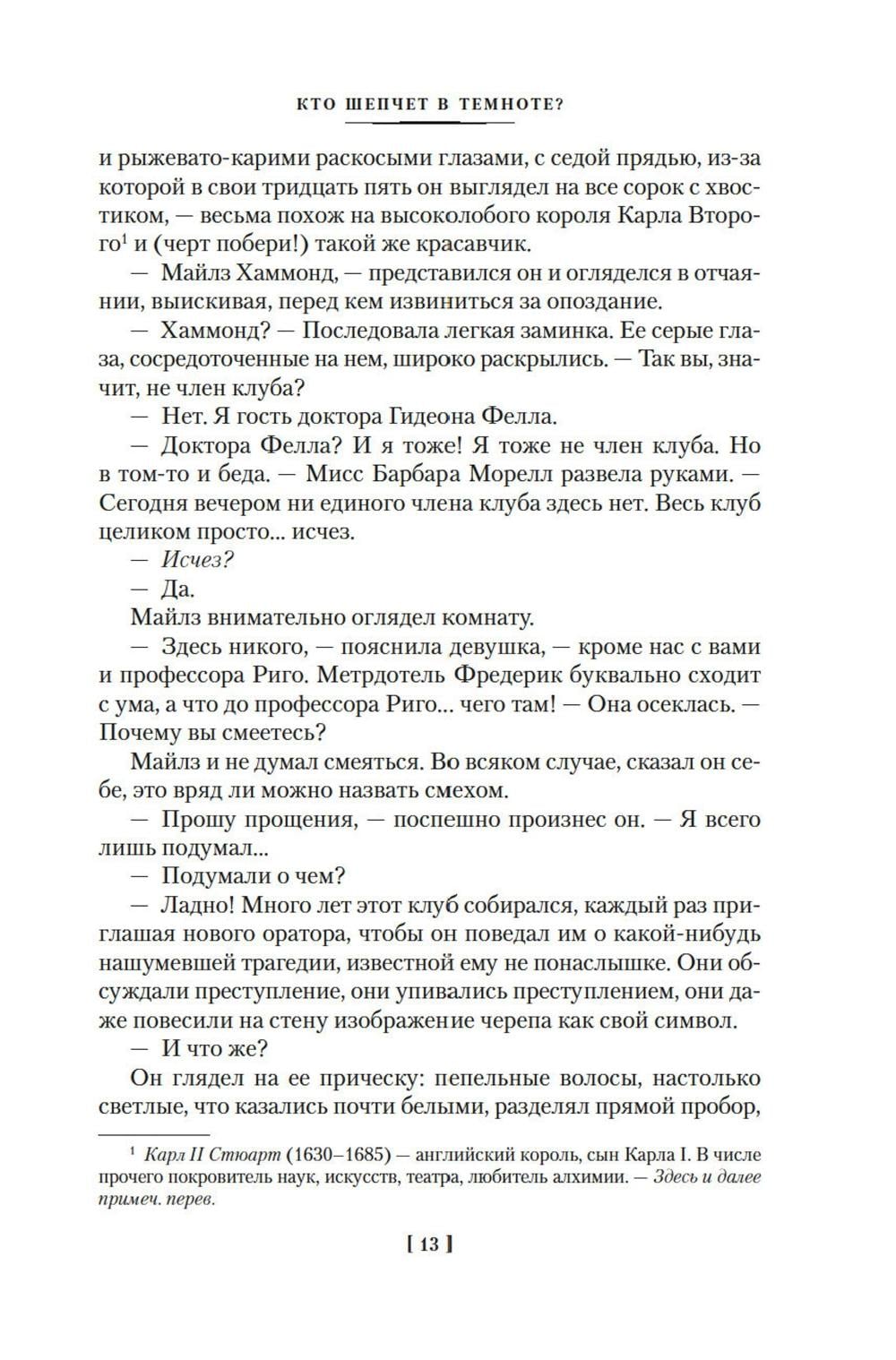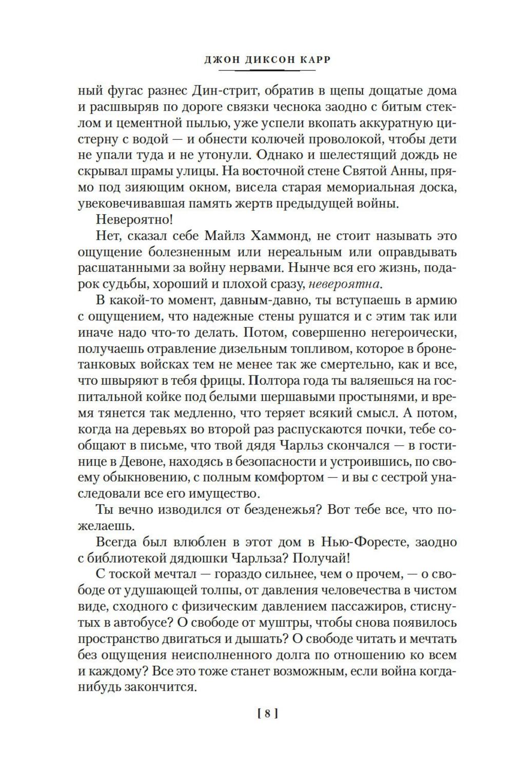 Золотой век детектива подарил нам множество звездных имен. Почетное место в этой плеяде по праву принадлежит Джону Диксону Карру (1906-1977) - виртуозному мастеру идеально построенных «невозможных преступлений в запертой комнате». В 1933 году Джон Диксон Карр впервые представил публике сыщика-любителя доктора Гидеона Фелла. Внешность героя, предположительно, была списана с другого корифея детективного жанра - Гилберта Честертона, а его заслуги в истории детективного жанра, по мнению большинства почитателей творчества Карра, поистине вызывают уважение. Так, писатель Кингсли Эмис в своем эссе «Мои любимые сыщики» назвал доктора Фелла «одним из трех великих преемников Шерлока Холмса». В настоящий сборник вошли шестнадцатый, семнадцатый и восемнадцатый романы цикла о расследованиях Гидеона Фелла, впервые публикуемые в новых переводах. В истории невозможного, но свершившегося убийства, рассказанной в романе «Кто шепчет в темноте?» (1946), все указывает на мистическую природу преступления, и хитроумному доктору Феллу предстоит либо поверить в нее, либо развеять сгустившийся морок... Возвращаясь домой буквально «с того света», разведчик Дональд Холден, герой романа «Уснувший сфинкс» (1947), с трепетом ожидал встречи с друзьями и возлюбленной. Однако то, что ему предстояло увидеть и узнать, не могло привидеться и в страшном сне... Процветающий адвокат Патрик Батлер, герой романа «Вне подозрений» (1949), уверен в себе и проигрывает крайне редко. И когда к нему одно за другим попадают два дела об отравлениях - совершенно очевидных с точки зрения обвинения, он без колебаний берется во что бы то ни стало доказать невиновность своих подзащитных.| Издательство | Азбука |