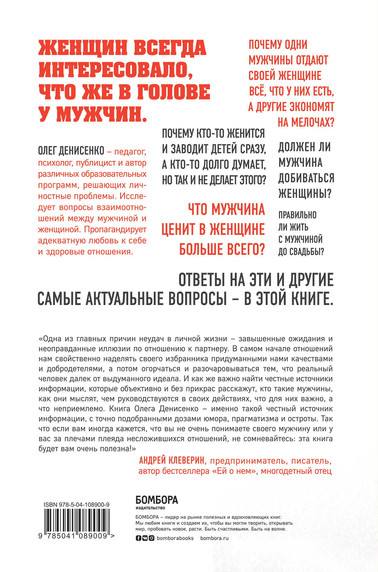 Женщин всегда интересовало, что в голове у мужчин. Чем они живут, какими принципами руководствуются. Можно долго размышлять, а можно - прочитать эту книгу и узнать все наверняка. Олег Денисенко долго изучал психологию и поведение мужчин как самих по себе, так и во взаимоотношениях, чтобы ответить на самые важные вопросы женщин. Как сделать правильный выбор и отличить человека, который сделает твою жизнь комфортной и счастливой, от того, кто не даст тебе ничего из вышеперечисленного. Как не потерять голову от любви и в то же время не подходить к выбору спутника как к деловому проекту. Доступным языком автор объясняет, как найти общий язык с собой, чтобы через это понимание выстраивать отношения с мужчиной. Учит отделять важные вещи от тех, которым не стоит уделять много внимания, и делится мнением, как стать женщиной, с которой хочется прожить всю жизнь. - Почему некоторые не хотят жениться и заводить детей? - Почему кто-то дарит дорогие подарки, а кто-то экономит на цветах? - Какие качества мужчина ценит в женщине в первую очередь? - Должен ли мужчина добиваться женщины? Ответы на все вопросы - в этой книге! Олег Денисенко - психолог, публицист и автор тренингов, исследует личностные проблемы и связи между мужчиной и женщиной. Выступая за счастливые отношения, он пропагандирует идею здоровой любви к себе, благодаря которой человек становится уверенным в себе и умеет ставить личные границы.| Издательство | ООО "Издательство "Эксмо" |