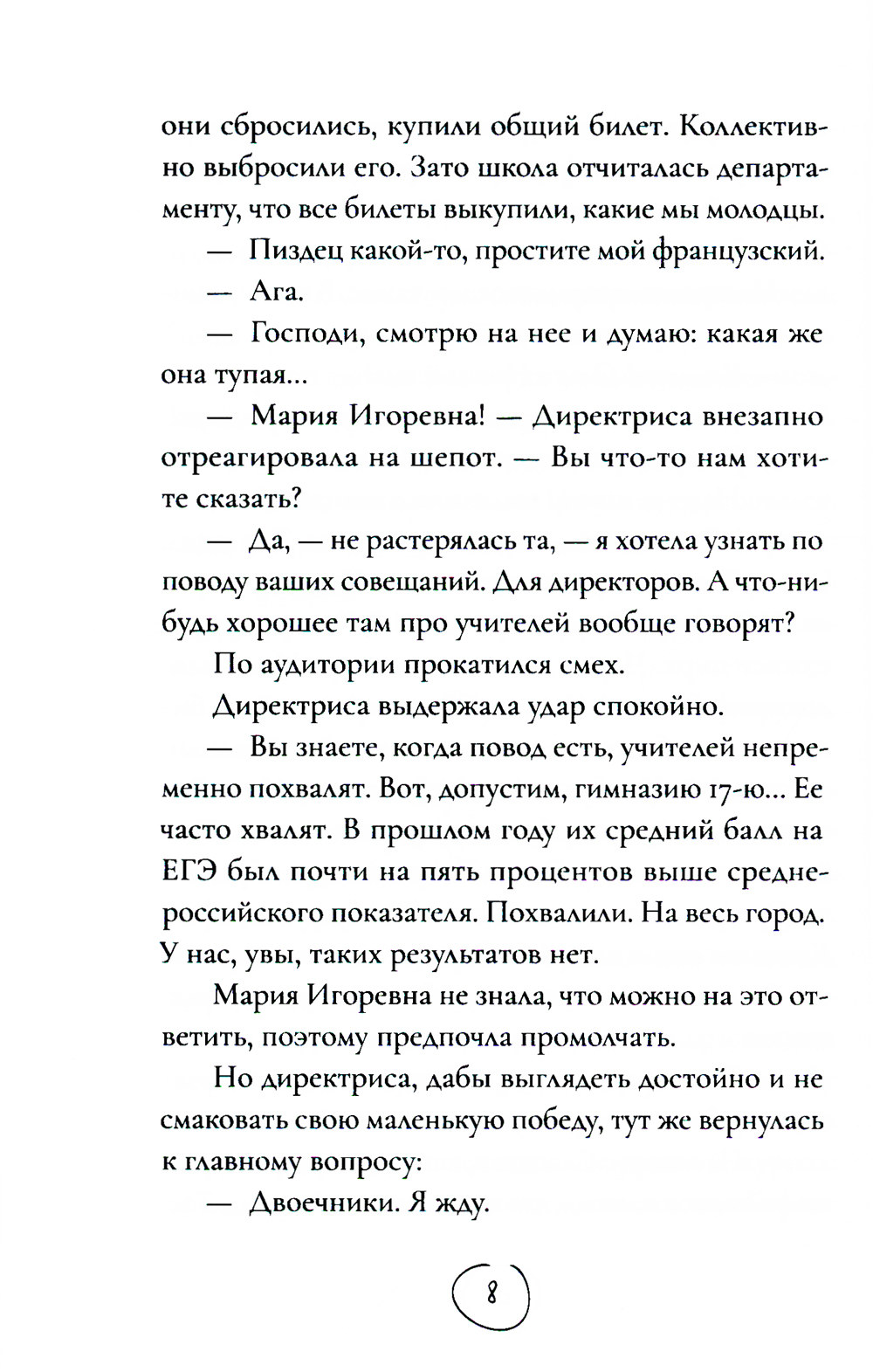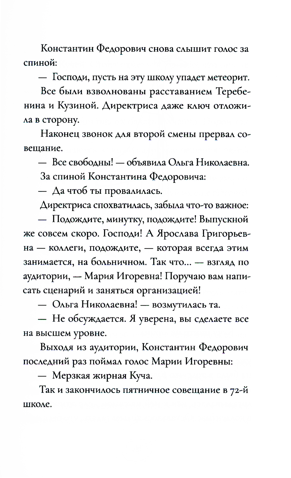 Роман Александра Ермолаева - сборник историй о самых обычных людях, работающих в самой обычной кемеровской школе. О директрисе, которую все за глаза зовут Кучей. О библиотекарше Дарье Анатольевне, на которую вдруг свалились миллионы. О двух старых учительницах математики, которые ненавидят друг друга всю жизнь, но причину их вражды никто не знает. И о новом учителе Константине Федоровиче, который, переехав в другой город, испытывает самые разные трудности: от проблем со школьниками до проблем со сном, - почти каждую ночь его будит плач за стеной.| Издательство | Дом историй |