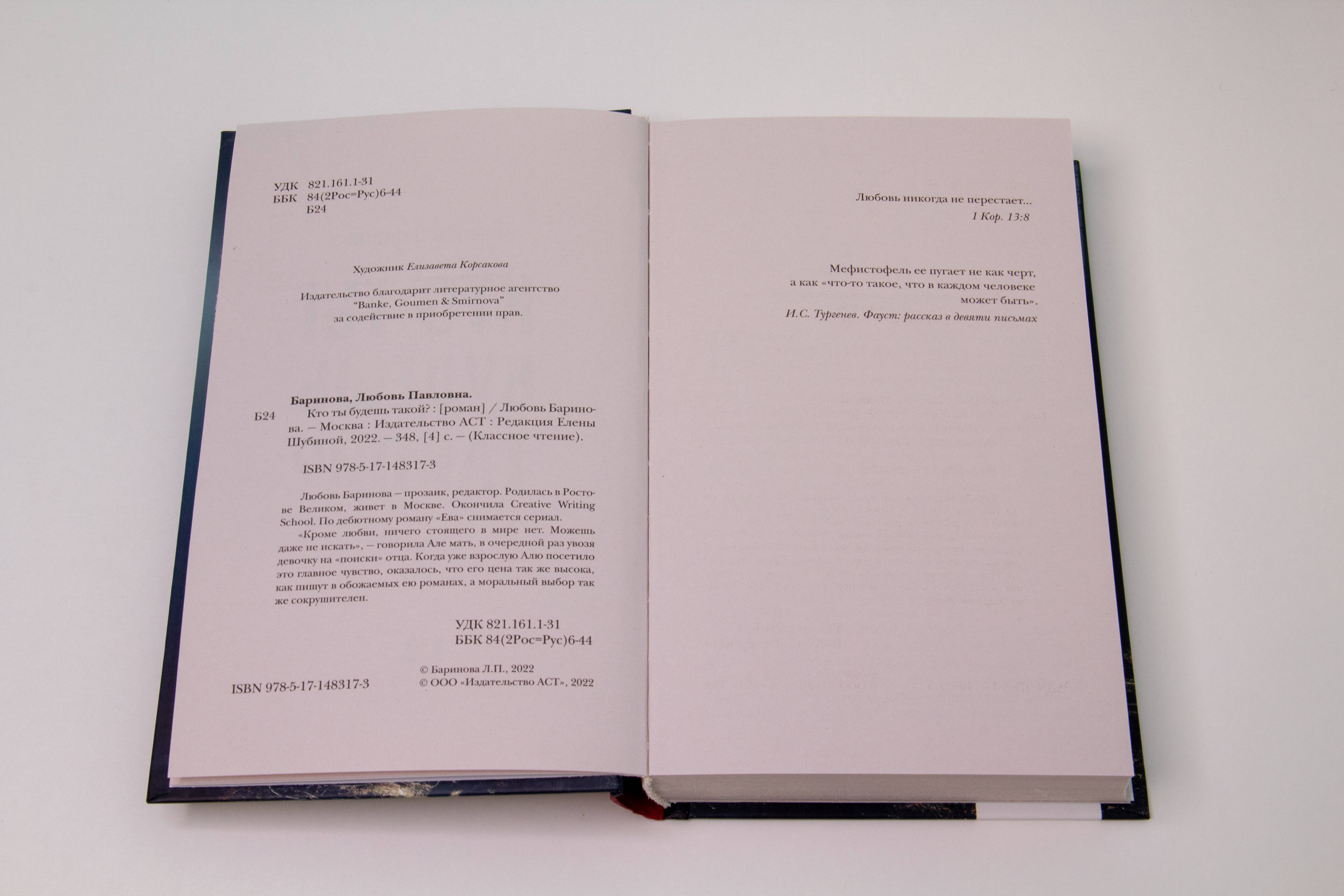 Роман Любови Бариновой «Кто ты будешь такой?» - сложная, многослойная история любви и предательства. «Какой толк в любви, если не жертвуешь ничем?» - героям, как и читателям, придется самостоятельно подтвердить или опровергнуть эту идею. Книга-загадка. Этот роман полон неожиданных тайн прошлого - они прячутся между страницами промокшей книги, в старой коробке из-под обуви, в подделке неизвестного полотна знаменитого мастера. Неожиданные повороты сюжета. Автор описывает жизни обыкновенных, на первый взгляд, персонажей и на каждой странице напоминает читателям о том, что все мы не те, кем кажемся другим. Чего бы вы ни ждали в финале, он вас изумит. Мастерство демиурга. Любовь Баринова раскладывает роман, как пасьянс, неспешно раскрывая карты, умело чередуя прошлое с настоящим, намекая на смутное будущее.| Издательство | АСТ |