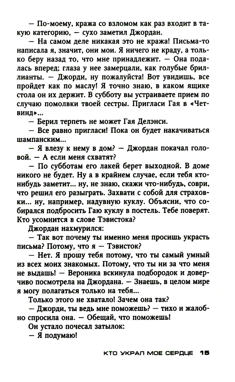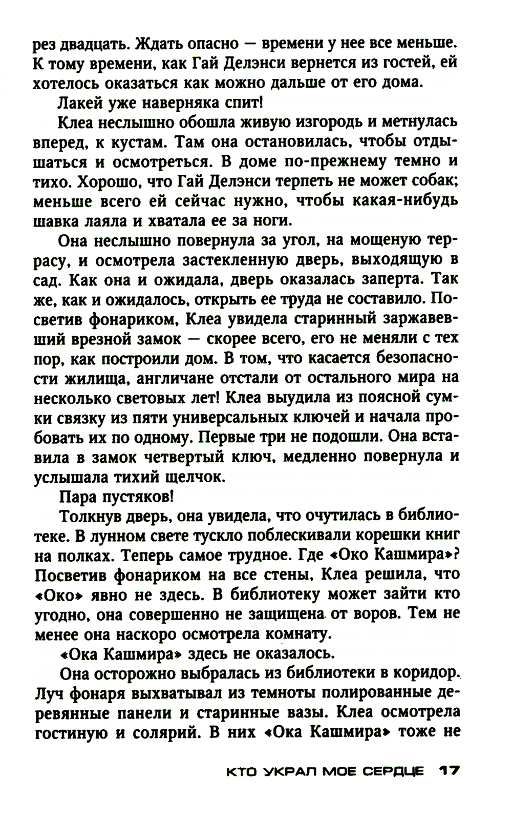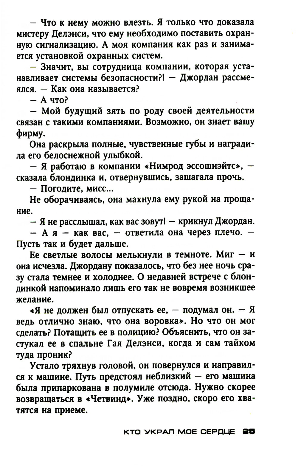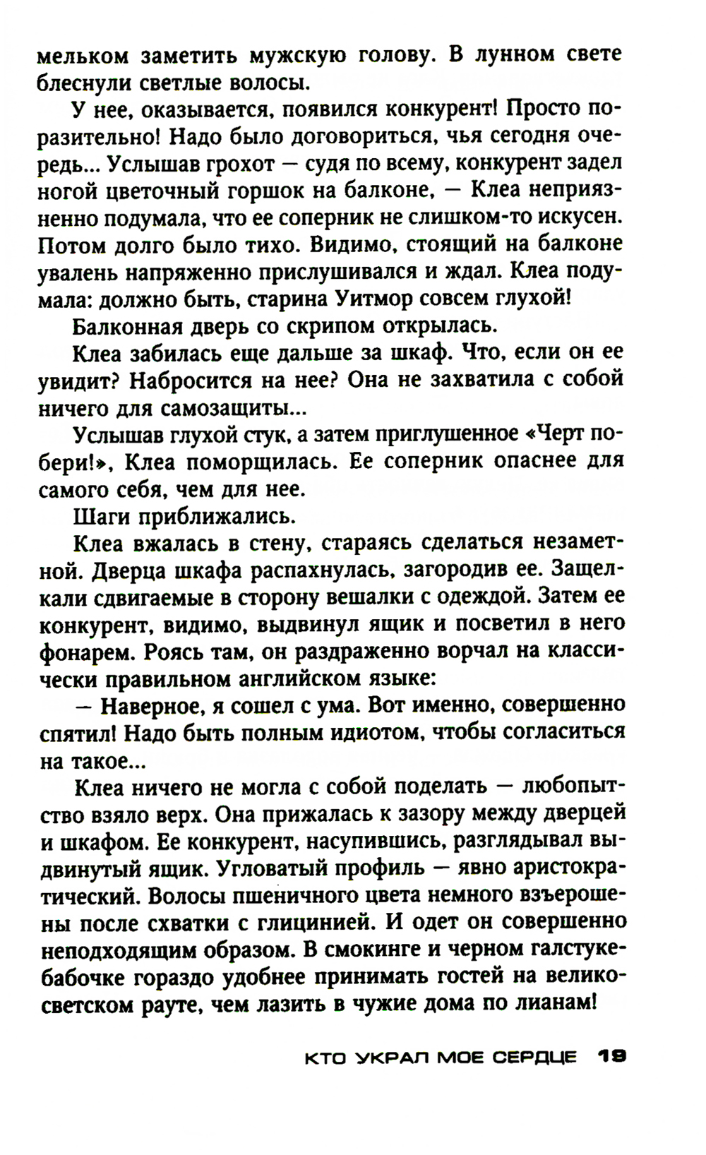 Клеа Рейс едва не погибла от взрыва на корабле, перевозившем коллекцию произведений искусства. В полиции ей не верят, так как она сидела в тюрьме и вообще у нее темное прошлое. Чтобы доказать правоту своих слов, Клеа решает украсть у богатого англичанина старинный кинжал, который якобы находился на корабле. Во время кражи она сталкивается с Джорданом Тэвистоком, настоящим джентльменом из почтенного английского рода, который тоже намерен кое-что украсть, а именно нескромные любовные письма своей приятельницы. Молодые люди конечно же уверены в случайности своей встречи, но судьбу не проведешь...| Издательство | Центрполиграф |