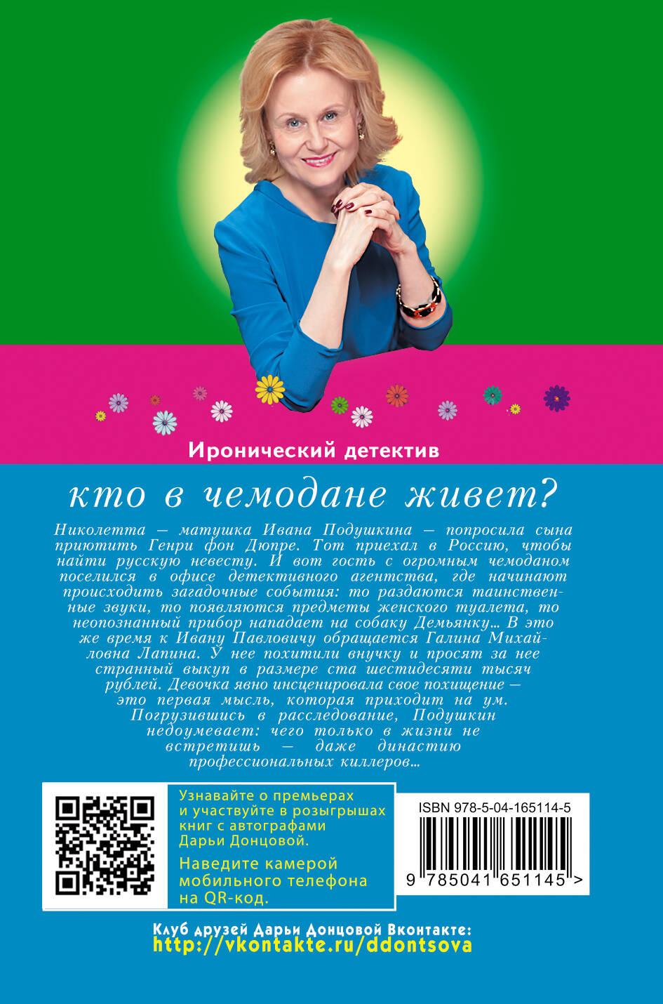 Дарья Донцова - самый популярный и востребованный автор в нашей стране, любимица миллионов читателей. В России продано более 200 миллионов экземпляров ее книг. Ее творчество наполняет сердца и души светом, оптимизмом, радостью, уверенностью в завтрашнем дне! Николетта - матушка Ивана Подушкина - попросила сына приютить Генри фон Дюпре. Тот приехал в Россию, чтобы найти русскую невесту. И вот гость с огромным чемоданом поселился в офисе детективного агентства, где начинают происходить загадочные события: то раздаются таинственные звуки, то появляются предметы женского туалета, то неопознанный прибор нападает на собаку Демьянку… В это же время к Ивану Павловичу обращается Галина Михайловна Лапина. У нее похитили внучку и просят за нее странный выкуп в размере ста шестидесяти тысяч рублей. Девочка явно инсценировала свое похищение - это первая мысль, которая приходит на ум. Погрузившись в расследование, Подушкин недоумевает: чего только в жизни не встретишь - даже династию профессиональных киллеров… ------------------------------ «Донцова невероятная работяга! Я не знаю ни одного другого писателя, который столько работал бы. Я отношусь к ней с уважением, как к образцу писательского трудолюбия. Женщины нуждаются в психологической поддержке и получают ее от Донцовой. Я и сама в свое время прочла несколько романов Донцовой. Ее читают очень разные люди. И очень занятые бизнес-леди, чтобы на время выключить голову, и домохозяйки, у которых есть перерыв 15-20 минут между отвести-забрать детей». - Галина Юзефович, литературный критик.| Издательство | Эксмо |