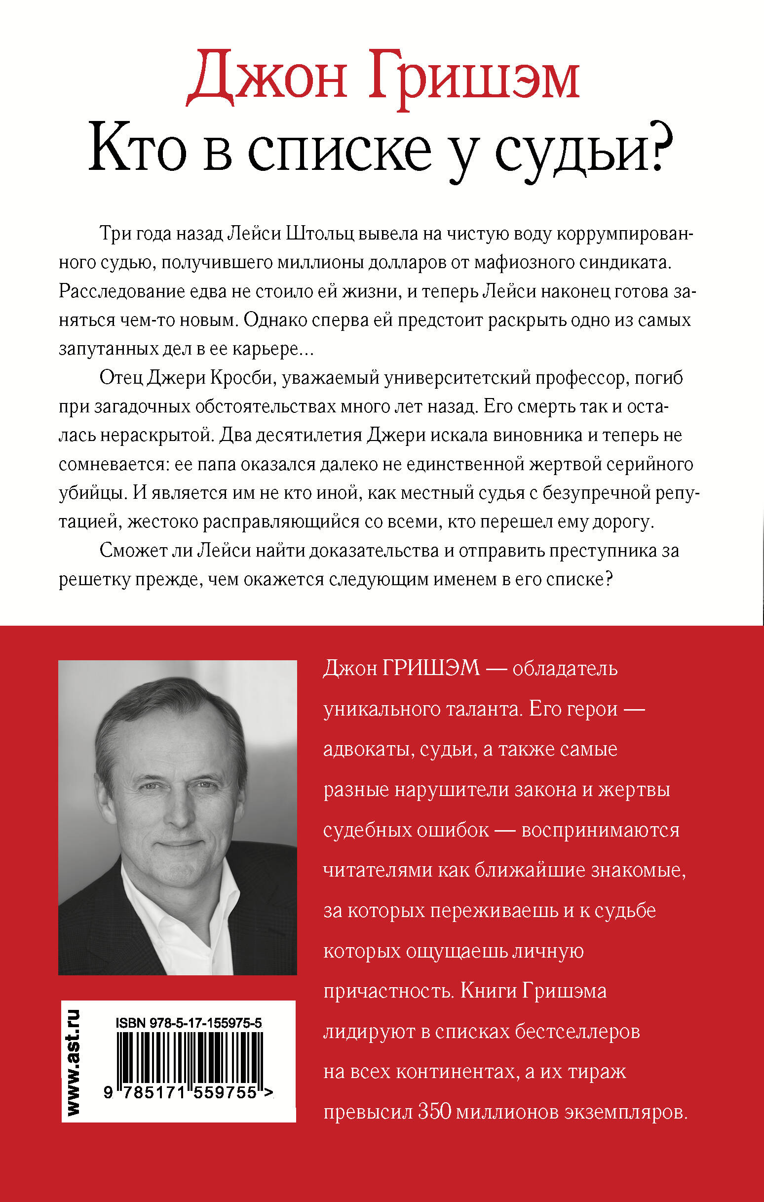 Новый юридический триллер от одного из самых популярных авторов современности. Лейси Штольц уже удалось однажды засадить за решетку судью, получившего крупную взятку от мафиозного синдиката. Но что если на этот раз очередной судья с безупречной репутацией окажется серийным убийцей? Сможет ли Лейси остановить кровавую руку правосудия и спасти невиновных, сохранив при этом собственную жизнь?| Издательство | Издательство "АСТ" |