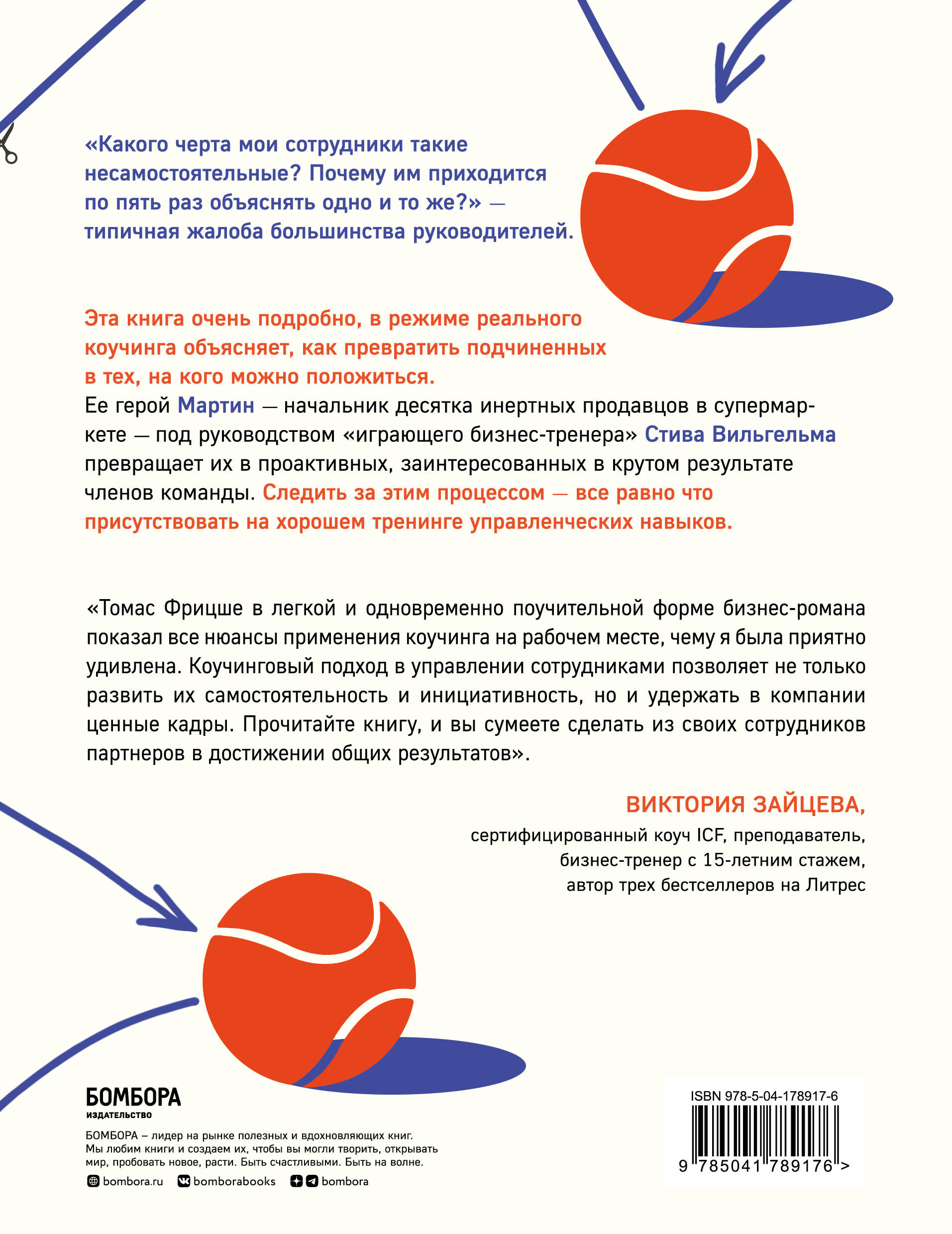 Томас Фрицше - дипломированный психиатр и тренер, основатель и владелец TOMplus, компании непрерывного образования, специализирующейся на прикладной психологии мозга и сердца. Более 20 лет успешно занимается обучением и коучингом менеджеров среднего и высшего звена, особенно в области лидерства и ведения переговоров. «Какого черта мои сотрудники такие несамостоятельные? Почему им приходится по пять раз объяснять одно и то же?» - типичная жалоба большинства руководителей. Эта книга очень подробно, в режиме реального коучинга, объясняет, как превратить подчиненных в тех, на кого можно положиться. Ее герой Мартин - начальник десятка инертных продавцов в супермаркете - под руководством «играющего бизнес-тренера» Стива Вильгельма превращает их в проактивных, заинтересованных в крутом результате членов команды. Следить за этим процессом - все равно что присутствовать на хорошем тренинге управленческих навыков. В форме короткометражного рассказа автор расскажет о том, как: - повысить производительность сотрудников; - четко объяснять задачи, чтобы совершенствовать компетентность; - правильно поощрять, мотивировать, награждать сотрудников; - вести переговоры и обсуждения с коллегами; - разобраться в собственных ошибках и принять их. «Коучинговый подход в управлении сотрудниками позволяет не только развить их самостоятельность и инициативность, но и удержать в компании ценные кадры. Автору книги удалось в легкой и одновременно поучительной форме бизнес-романа показать все нюансы применения коучинга на рабочем месте, чему я была приятно удивлена. Прочитайте книгу, и вы сумеете сделать из своих сотрудников партнеров в достижении общих результатов». - Виктория Зайцева, сертифицированный коуч icf, преподаватель, бизнес-тренер с 15-летним стажем, автор трех бестселлеров на Литрес