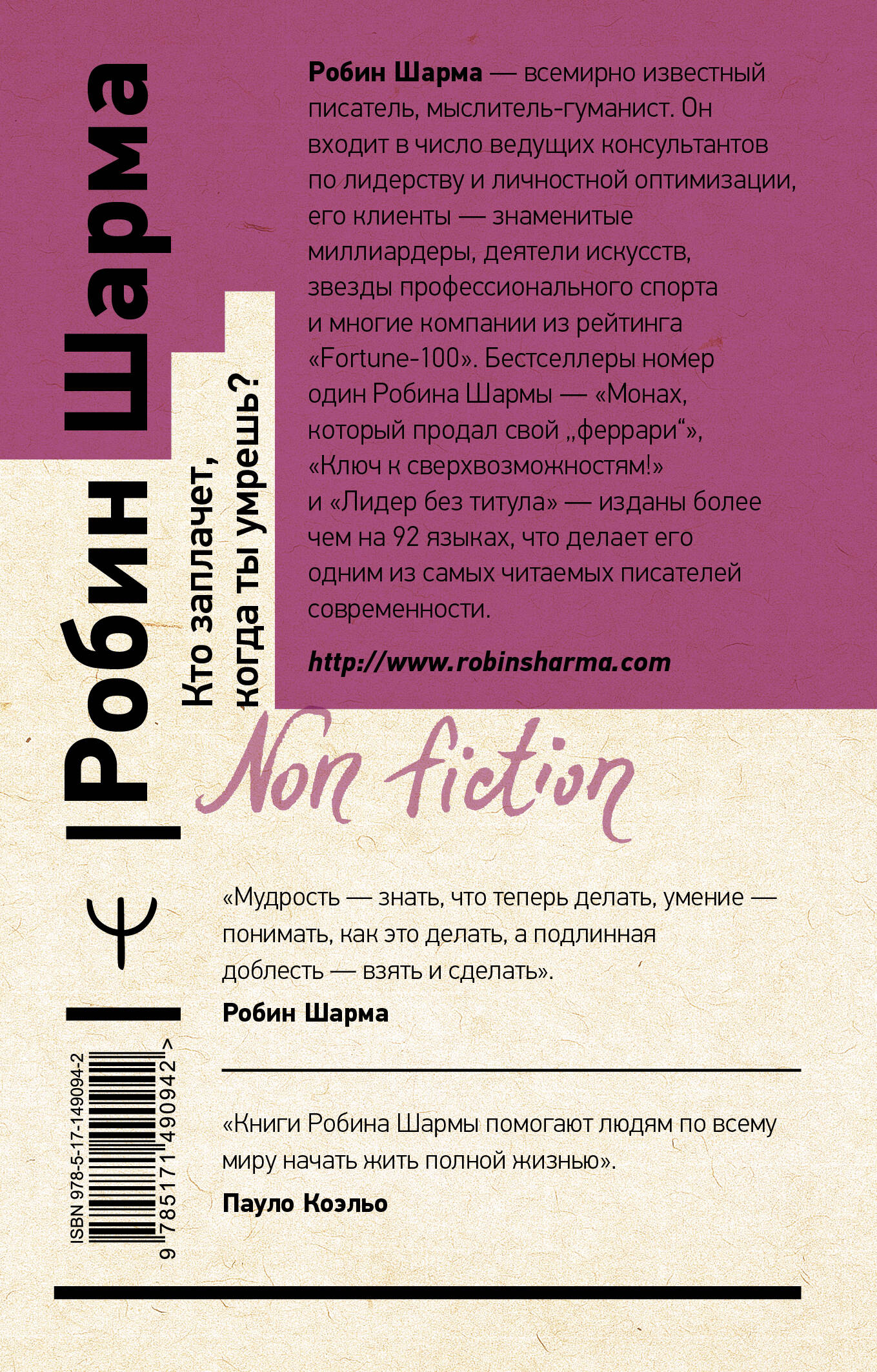 Аннотация: Кто заплачет, когда ты умрешь? Уроки жизни от монаха, который продал свой «феррари»