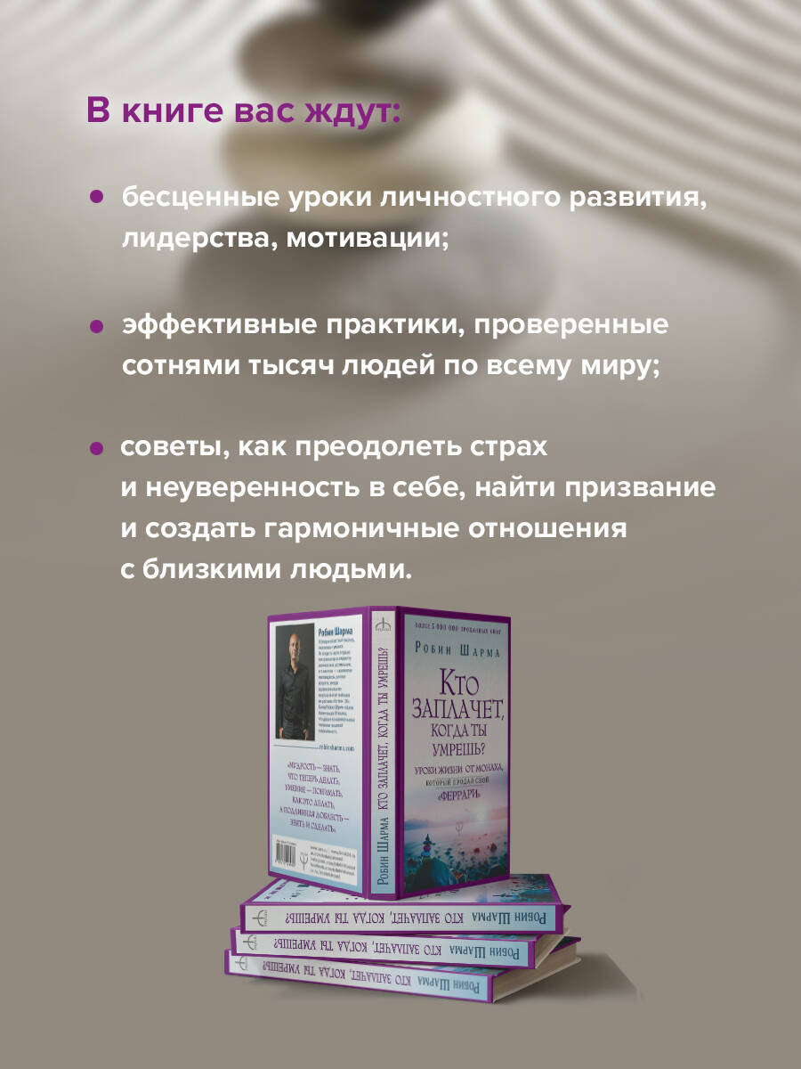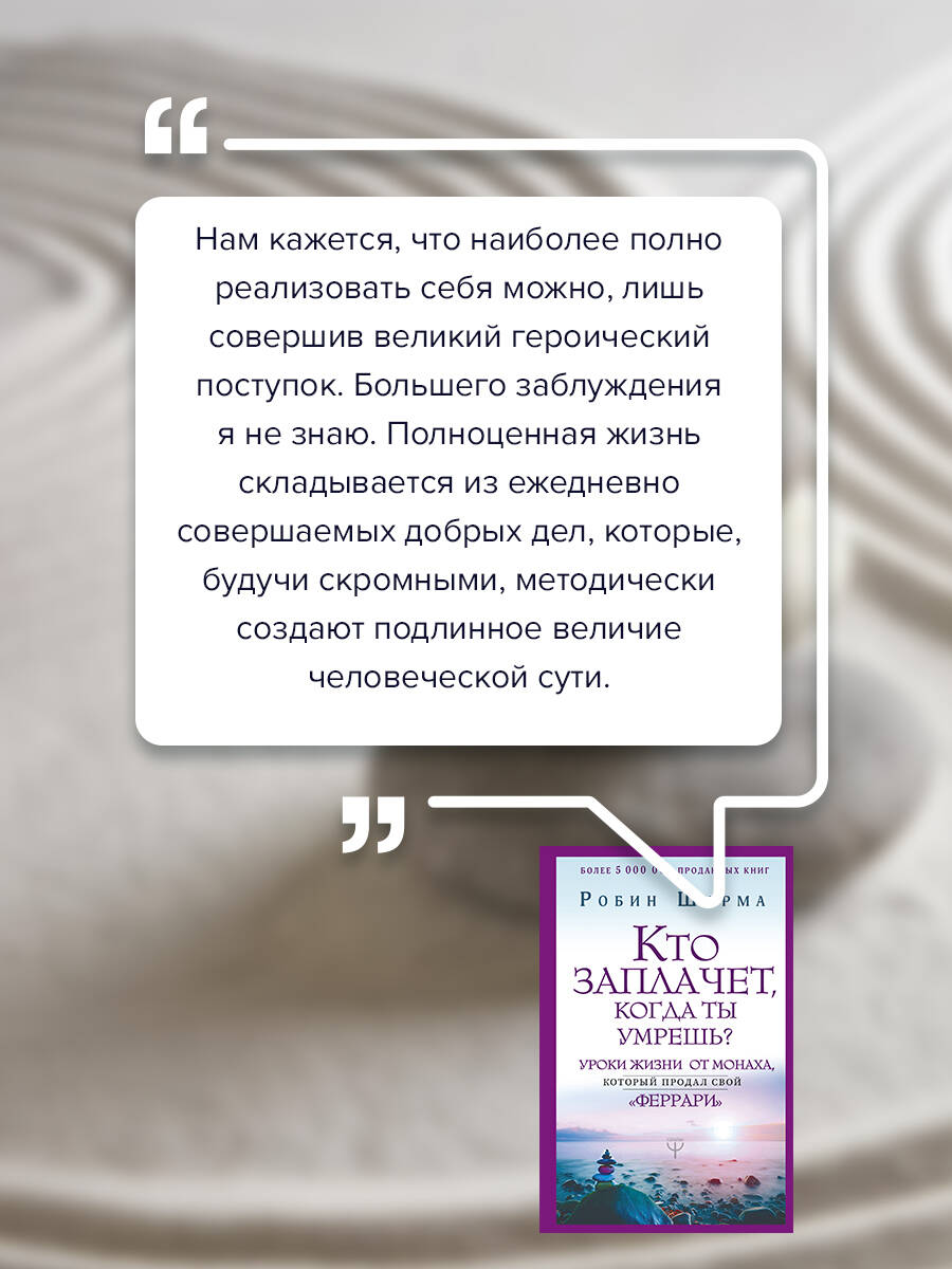 Аннотация: Кто заплачет, когда ты умрешь? Уроки жизни от монаха, который продал свой «феррари»