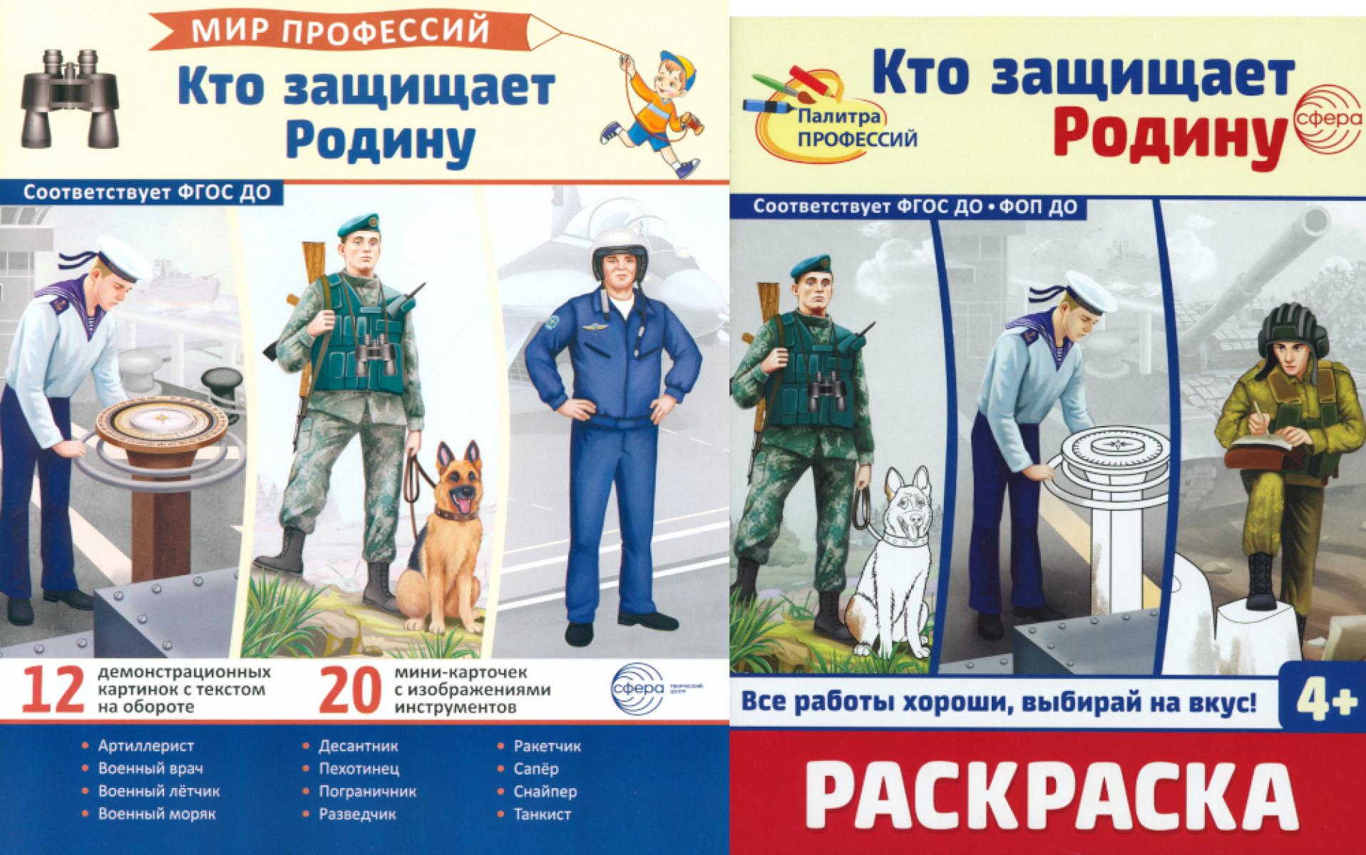 Аннотация: Кто защищает Родину (комплект: демонстрационные картинки и раскраска)