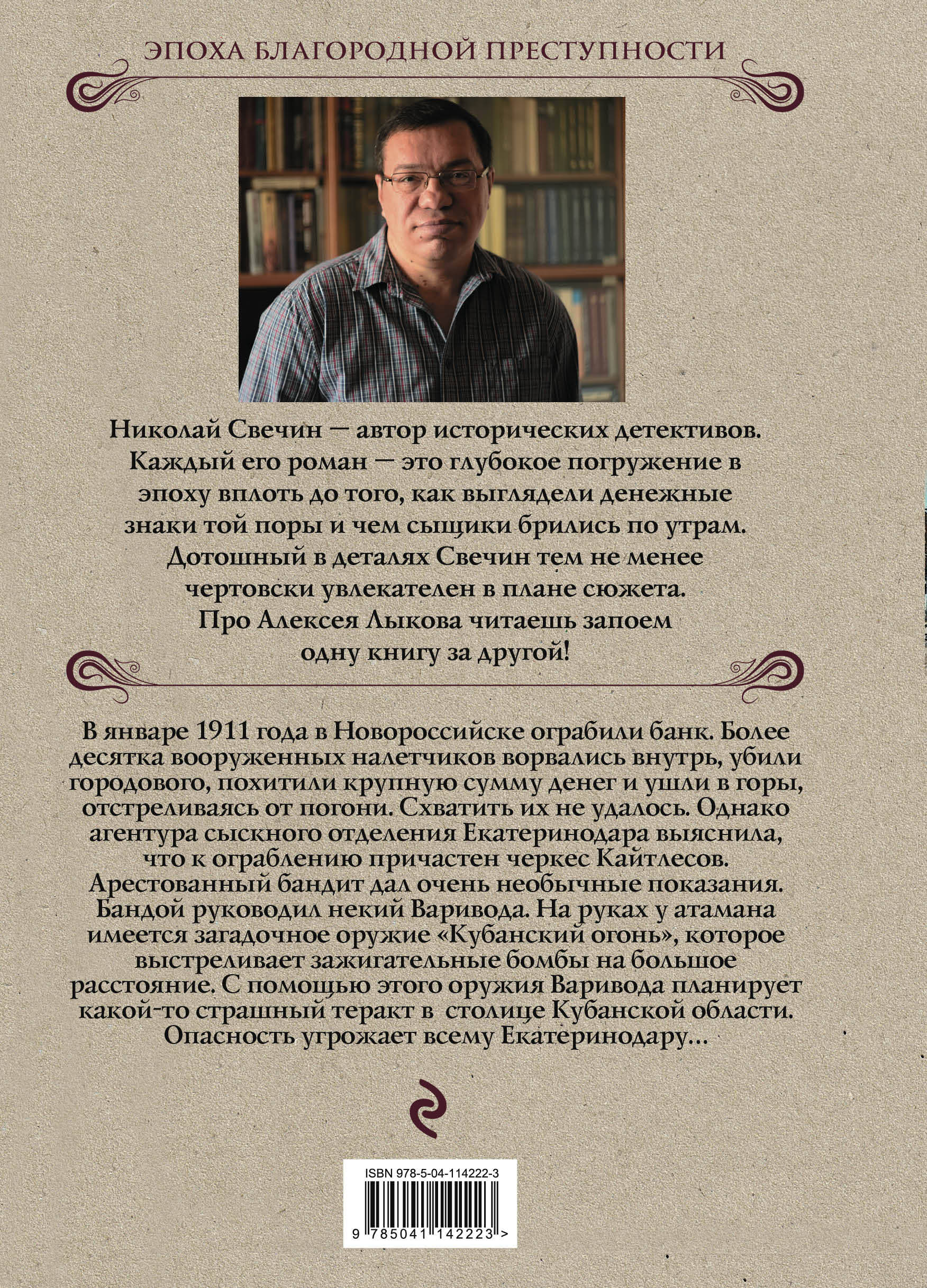 В январе 1911 года в Новороссийске ограбили банк. Более десятка вооруженных налетчиков ворвались внутрь, убили городового, похитили крупную сумму денег и ушли в горы, отстреливаясь от погони. Схватить их не удалось. Однако агентура сыскного отделения Екатеринодара выяснила, что к ограблению причастен черкес Кайтлесов. Арестованный бандит дал очень необычные показания. Бандой руководил некий Варивода. На руках у атамана имеется загадочное оружие «Кубанский огонь», которое выстреливает зажигательные бомбы на большое расстояние. С помощью этого оружия Варивода планирует какой-то страшный теракт в столице Кубанской области. Опасность угрожает всему Екатеринодару… Новый роман из серии расследований Алексея Лыкова! Одна из самых длинных и самых уважаемых серий исторического детектива в России! Стабильные новинки три раза в год, продажи выше 10 тысяч экземпляров!| Издательство | ООО "Издательство "Эксмо" |