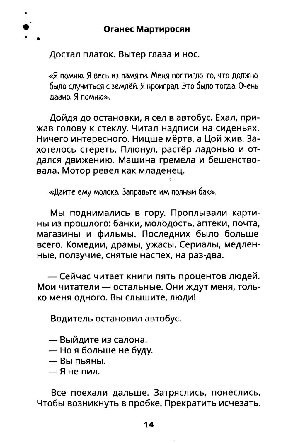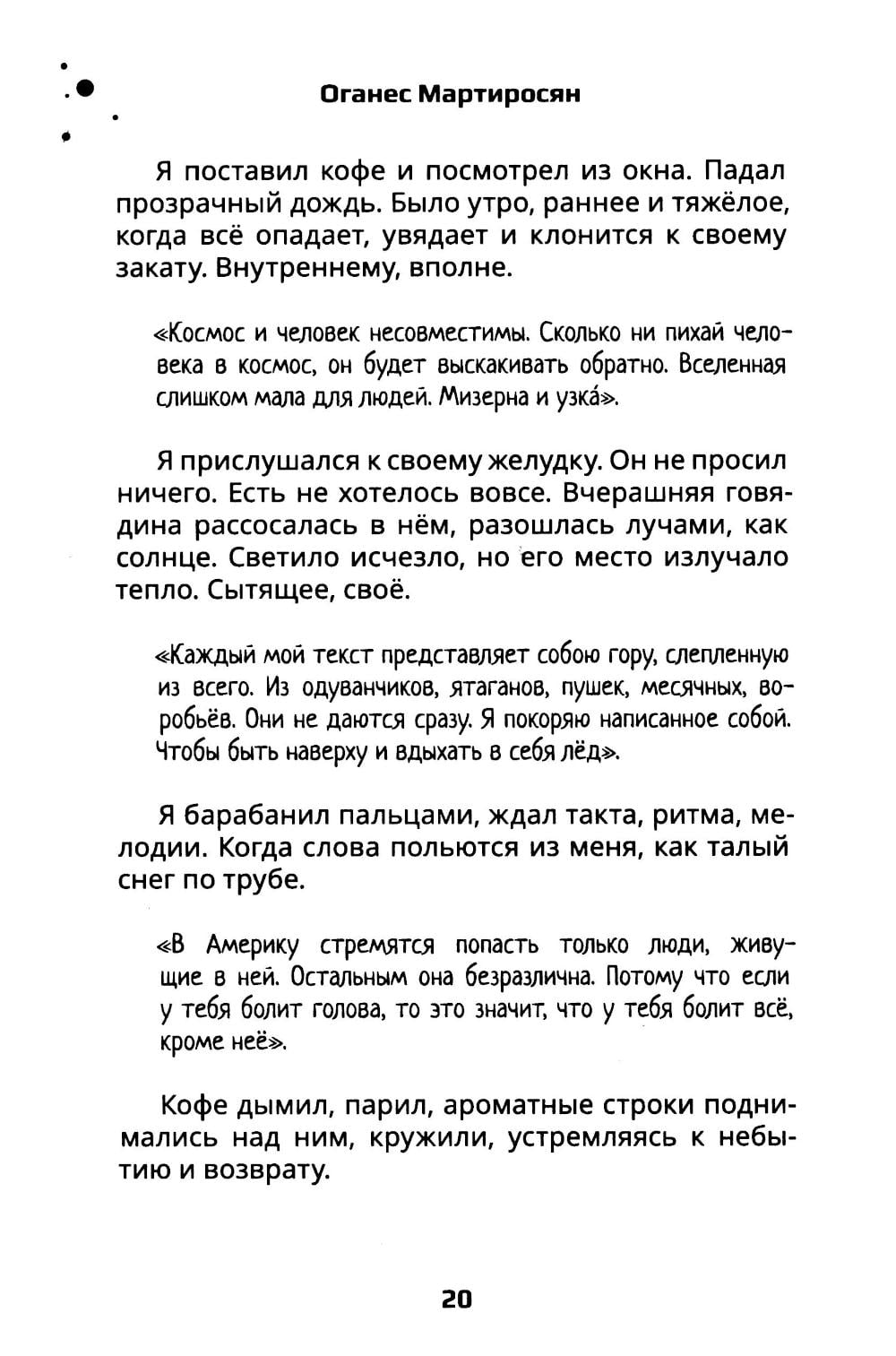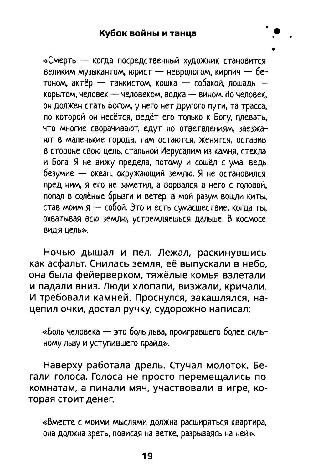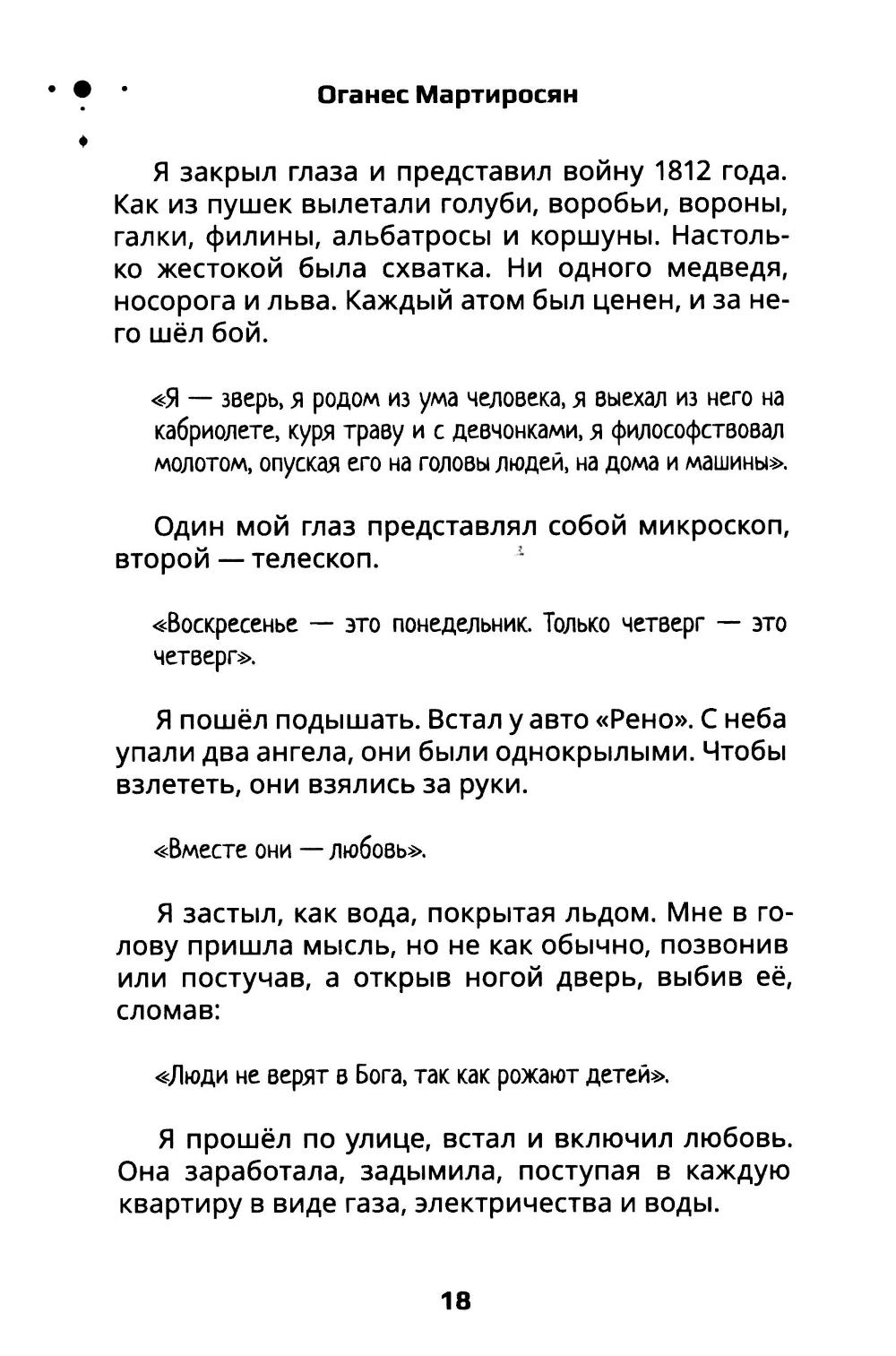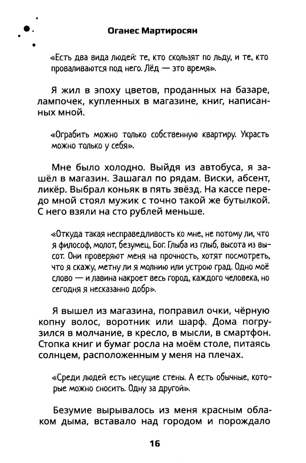 О мытарствах литератора в современной России: слово, любовь, смерть, духовные прозрения, соцсети, издательства Москвы, горцы Кавказа, боль и исцеление всего мира и намного больше этого. «Книга эта - любовь, должная вращать целый мир, приводить его в движение согласно своим законам, выращенным в уме», - пишет автор. Издатели книги не пропагандируют табак, алкоголь, наркотики и насилие, не всегда разделяют увлечения героев книги и призывают читателей к здоровому образу жизни.| Издательство | Чтиво |