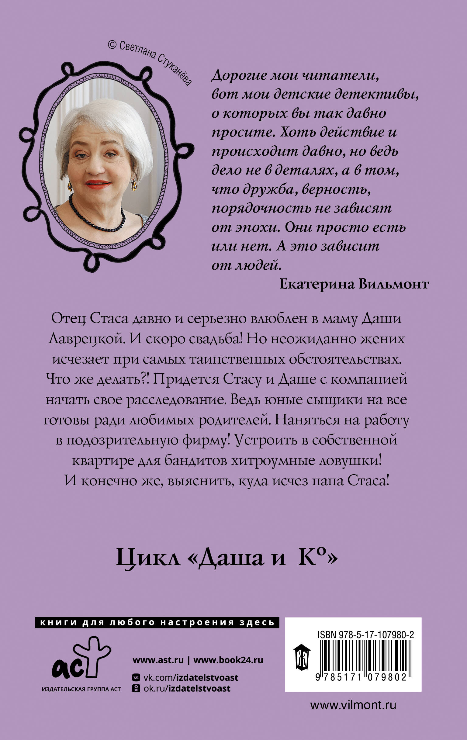 Отец Стаса давно и серьезно влюблен в маму Даши Лаврецкой. И скоро свадьба! Но неожиданно жених исчезает при самых таинственных обстоятельствах. Что же делать?! Придется Стасу и Даше с компанией начать свое расследование. Ведь юные сыщики на все готовы ради любимых родителей. Наняться на работу в подозрительную фирму! Устроить в собственной квартире для бандитов хитроумные ловушки! И конечно же, выяснить, куда исчез папа Стаса!| Издательство | ИЗДАТЕЛЬСТВО "АСТ" |