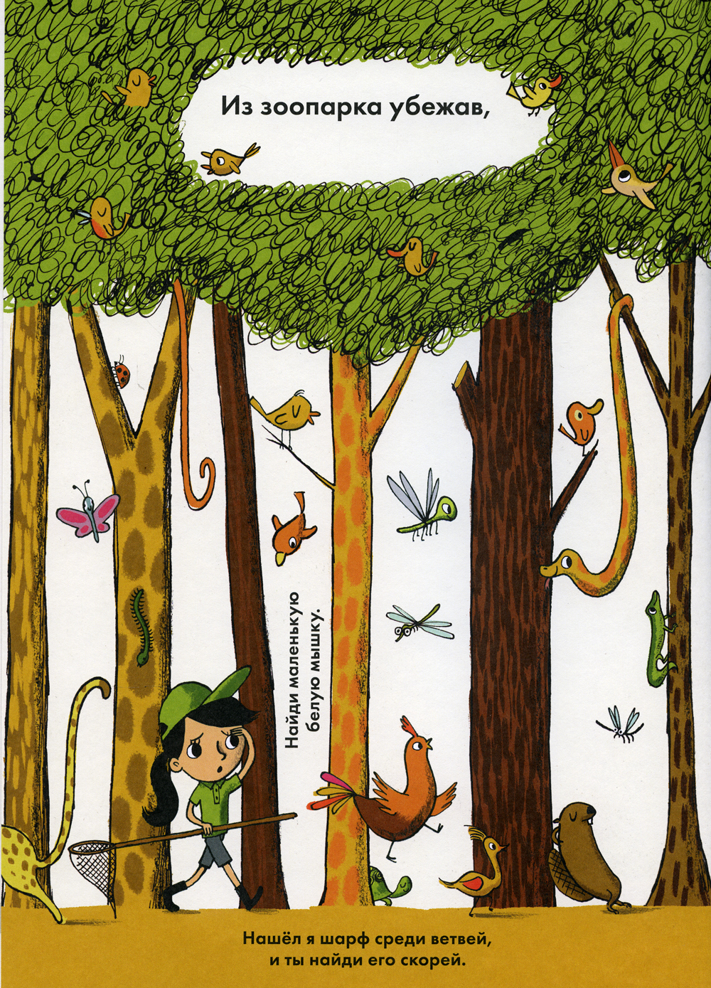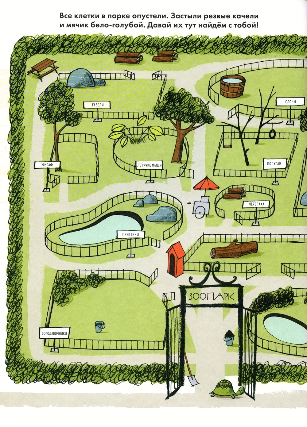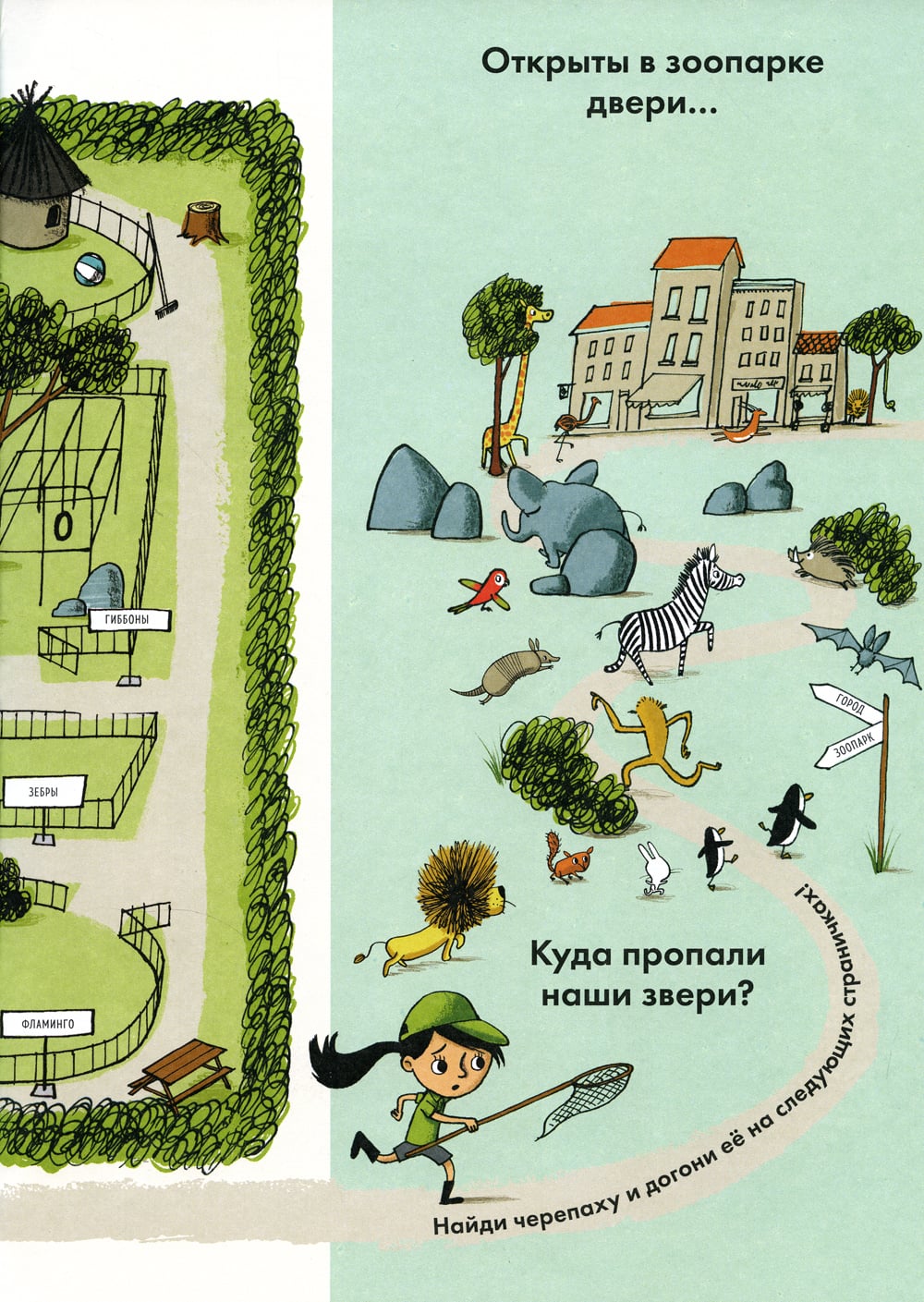 Животные из зоопарка разбежались кто куда! Нужно помочь смотрительнице вернуть их обратно! Читайте стихи и играйте в «найди и покажи»: ищите пингвина, который уснул под газетой, крокодила, который залез в трубу, серых слонов среди серых камней... Учите названия самых разных животных и повторяйте счёт от 1 до 10.| Издательство | Клевер-Медиа-Групп |