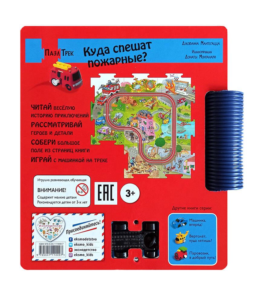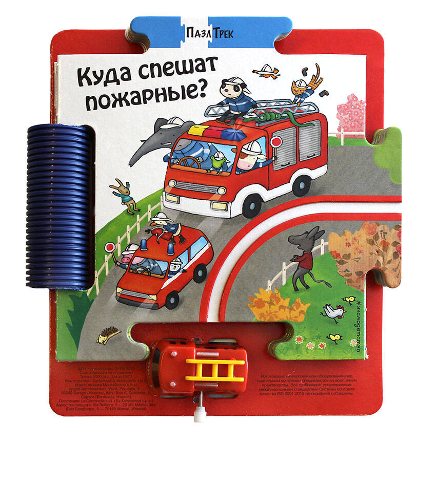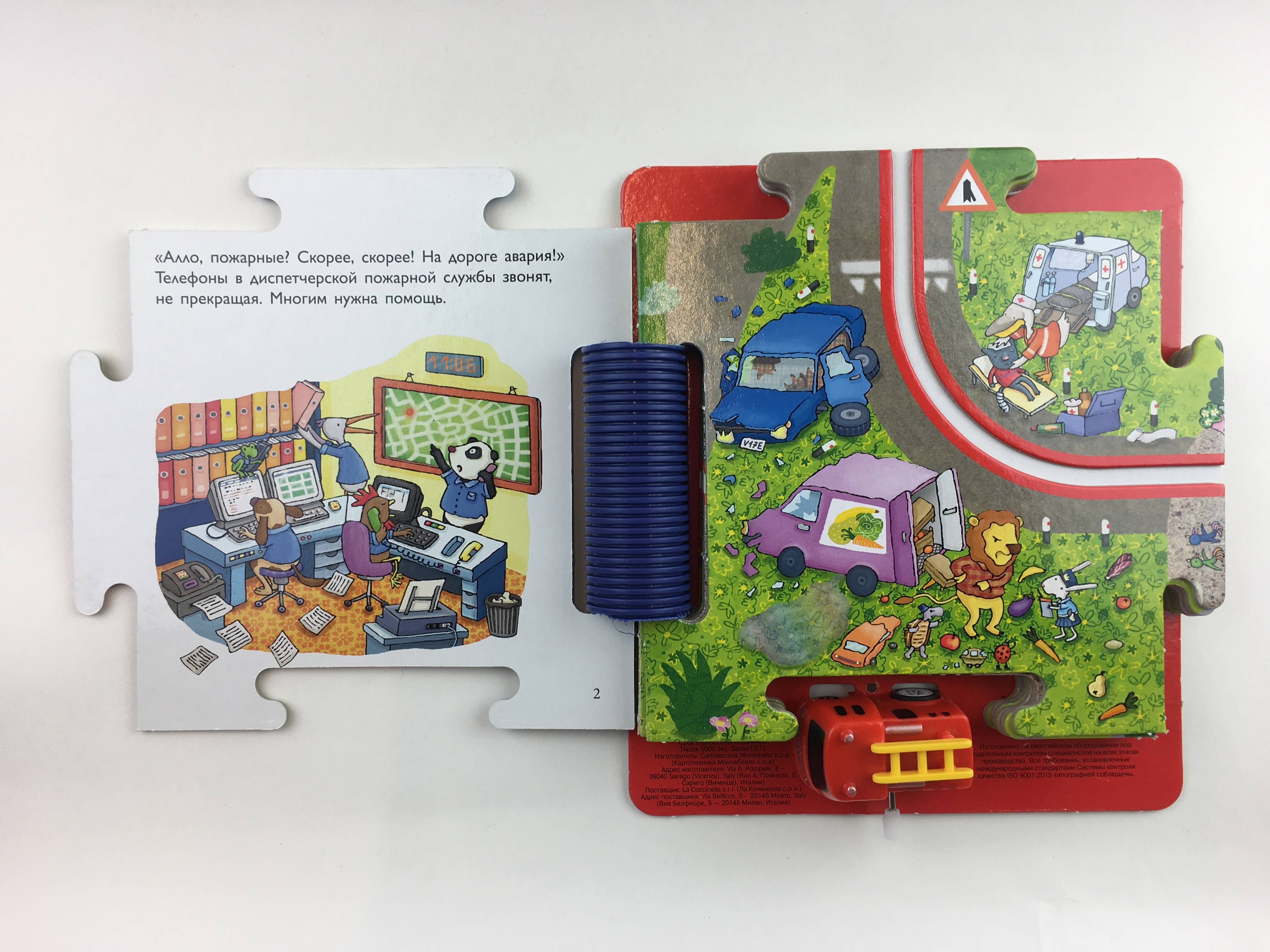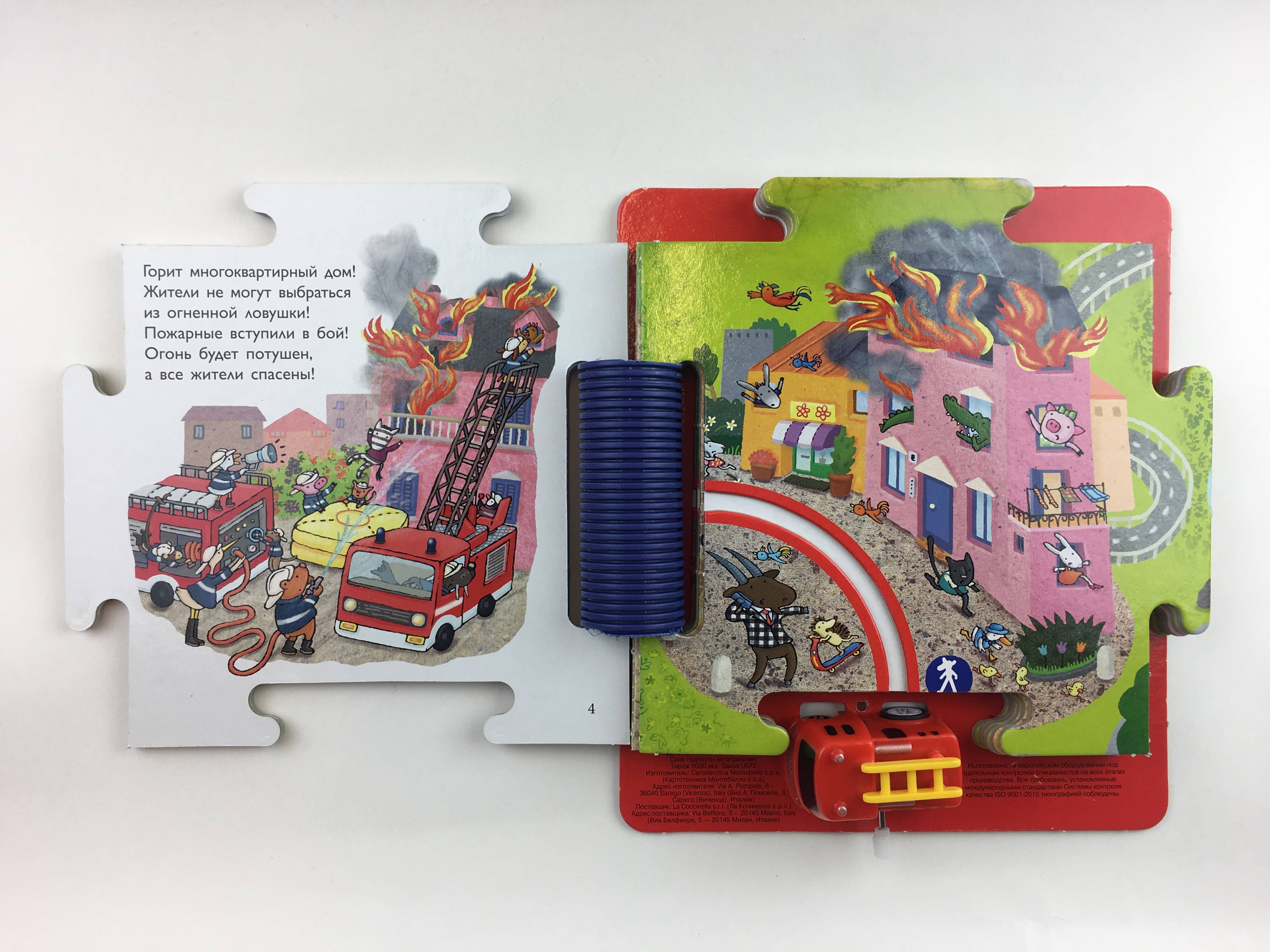 Бесстрашные пожарные всегда помогут в беде! Они спасут из огня жителей дома и пассажиров загоревшегося самолета; наполнят водой специальный самолет и потушат лесной пожар. Хочешь стать пожарным? Собери игровое поле, поставь машинку на трек - и поспеши на помощь!| Издательство | ООО "Издательство "Эксмо" |