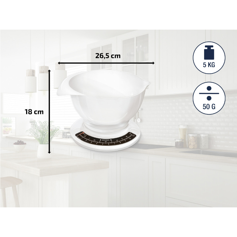 Кухонные весы, со съемной чашей для взвешивания (2.5л), с удобной ручкой и носиком. Имеет функцию «TARE».