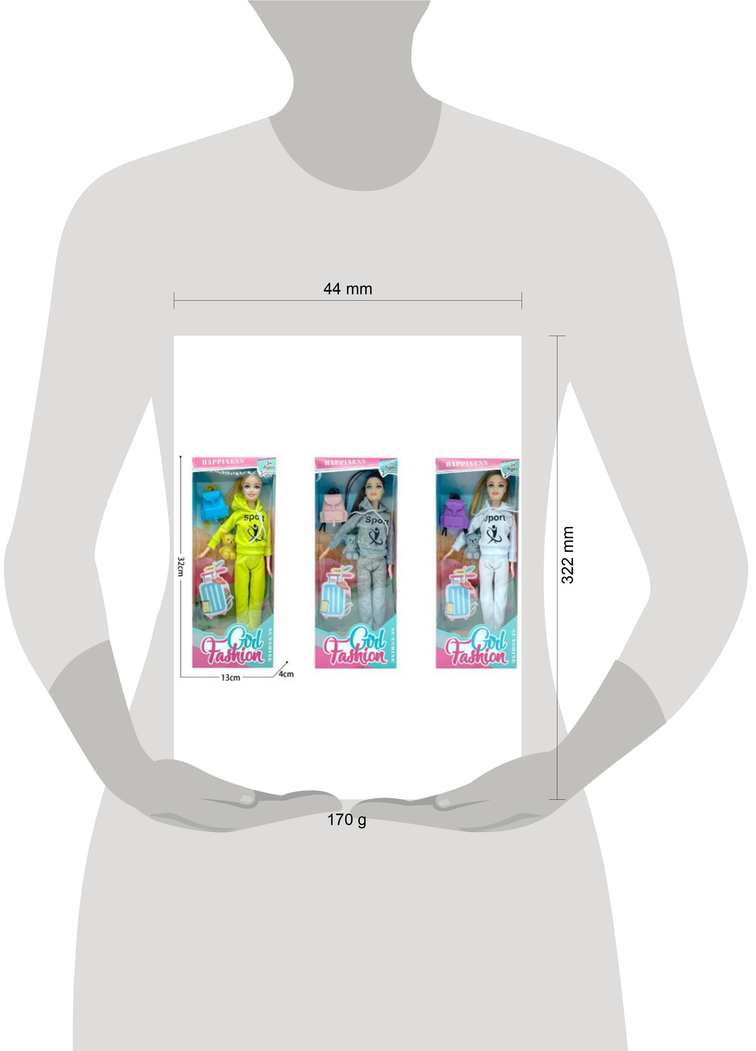 Кукла (28 см) "Спортивная девушка"(рюкзак,мишка,шарнирная, микс: 3 вида,в кор.) ( Арт. 2326259)