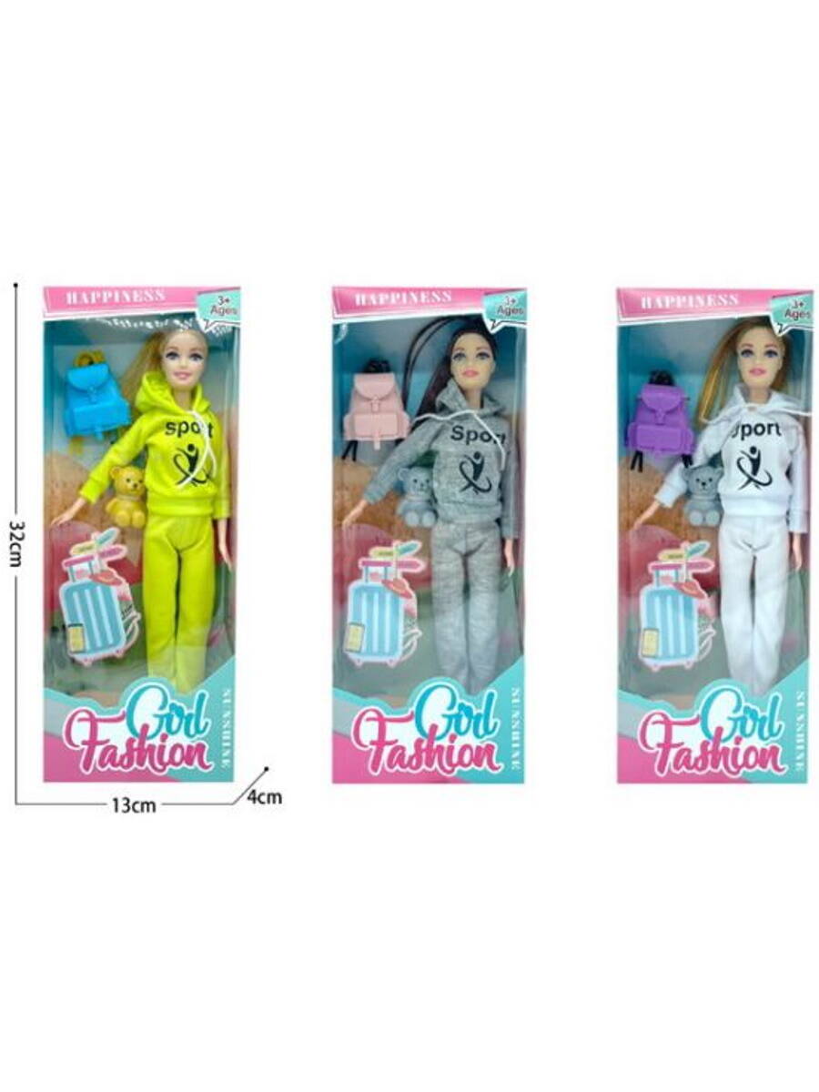 Аннотация: Кукла (28 см) "Спортивная девушка"(рюкзак,мишка,шарнирная, микс: 3 вида,в кор.) ( Арт. 2326259)