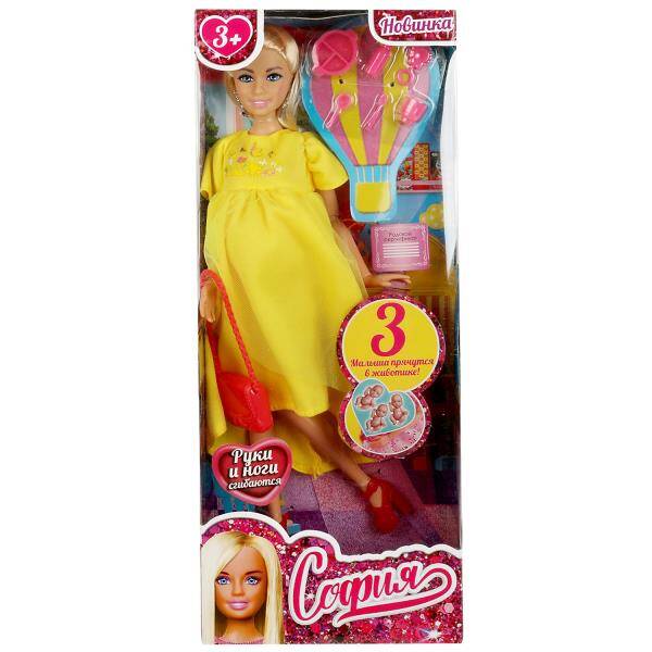 Аннотация: Кукла 29 см София беременная тройней, руки и ноги сгиб, акс, кор КАРАПУЗ в кор.24шт