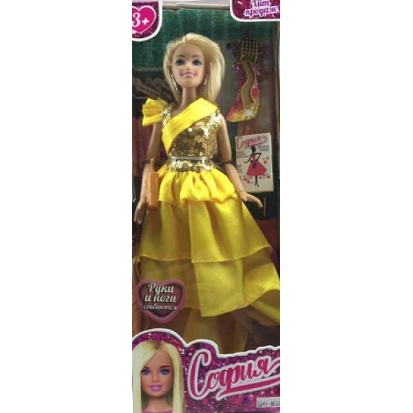 Кукла "София" ТМ "Карапуз" станет прекрасным подарком для вашей принцессы: - руки и ноги сгибаются В комплекте: - расчёска - сумочка Модница-София одета в красивое пышное платье в жёлто-золотой гамме с лифом, декорированном пайетками. Образ куколки дополняют модные крупные серьги и элегантная сумочка. Одежду и аксессуары легко снять и надеть. С такой модной куклой девочке будет интересно и весело играть: благодаря тому, что руки и ноги куклы подвижны, им можно придать любое положение. У Софии длинные красивые волосы, которые хозяйка куклы сможет заплетать в разные причёски. Детально проработанный дизайн игрушки вдохновит девочку на новые игровые сюжеты. Игра с куклой ТМ "Карапуз" развивает: - чувство стиля и вкус - речь - воображение - социально-коммуникативные навыки Рост куклы: 29 см. Материал: пластмасса + текстиль. Рекомендовано детям от 3-х лет.