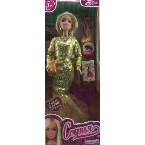 Кукла "София" ТМ "Карапуз" станет прекрасным подарком для вашей принцессы: - руки и ноги сгибаются - реалистичные ресницы В комплекте: - расчёска - сумочка Модница-София одета в роскошное золотистое платье со сверкающими пайетками. Образ куколки дополняют модные крупные серьги, колье и элегантная сумочка. Одежду и аксессуары легко снять и надеть. С такой модной куклой девочке будет интересно и весело играть: благодаря тому, что руки и ноги куклы подвижны, им можно придать любое положение. У Софии длинные красивые волосы, которые хозяйка куклы сможет заплетать в разные причёски. Детально проработанный дизайн игрушки вдохновит девочку на новые игровые сюжеты. Игра с куклой ТМ "Карапуз" развивает: - чувство стиля и вкус - речь - воображение - социально-коммуникативные навыки Рост куклы: 29 см. Материал: пластмасса + текстиль. Рекомендовано детям от 3-х лет.| Издательство | С-Маркет ООО |