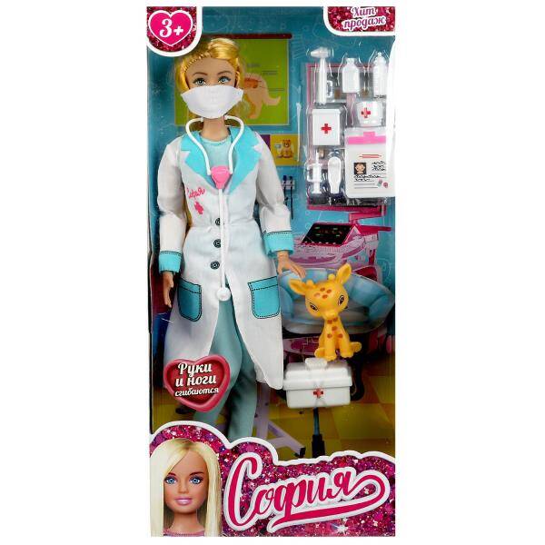 Кукла 29 см София, руки и ноги сгиб, ветеринар, жираф, акс, кор КАРАПУЗ в кор.24шт