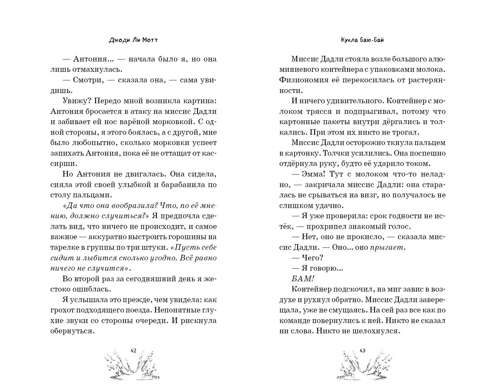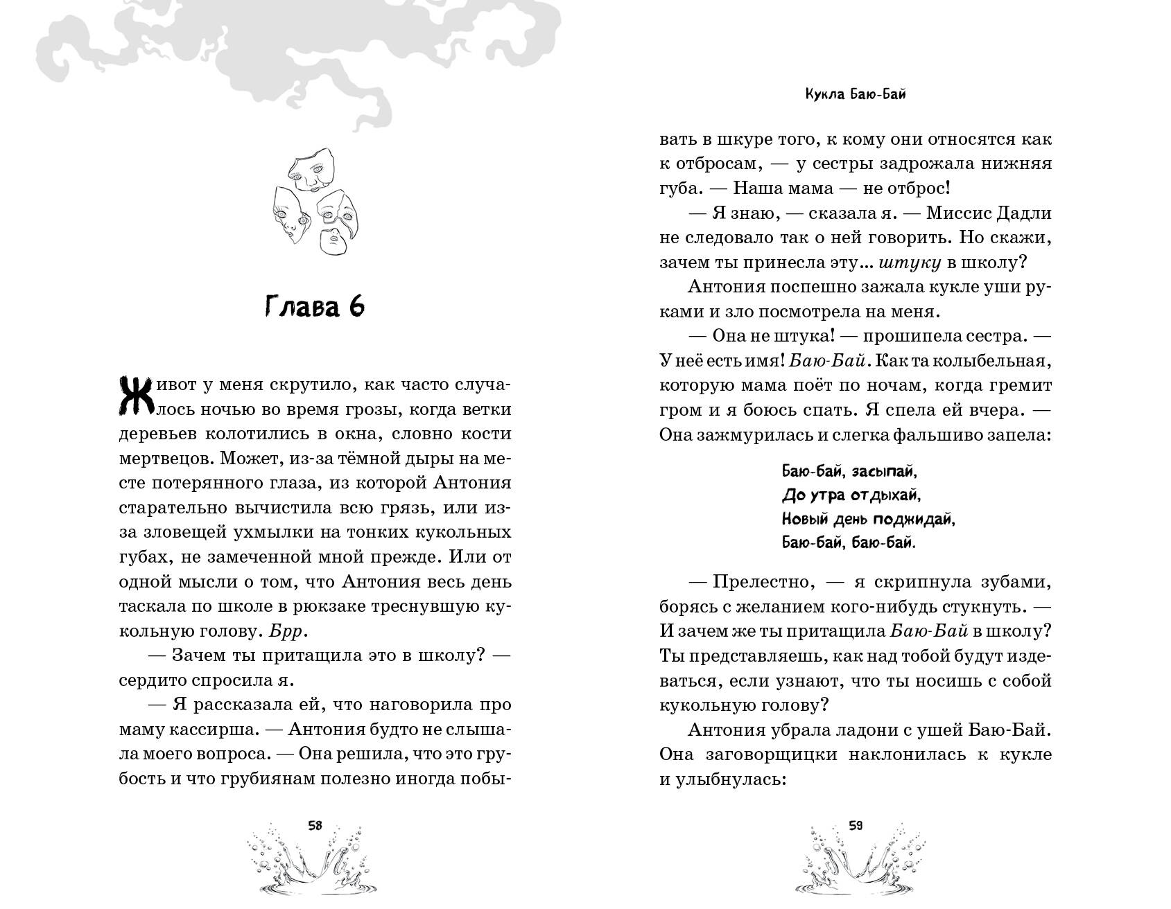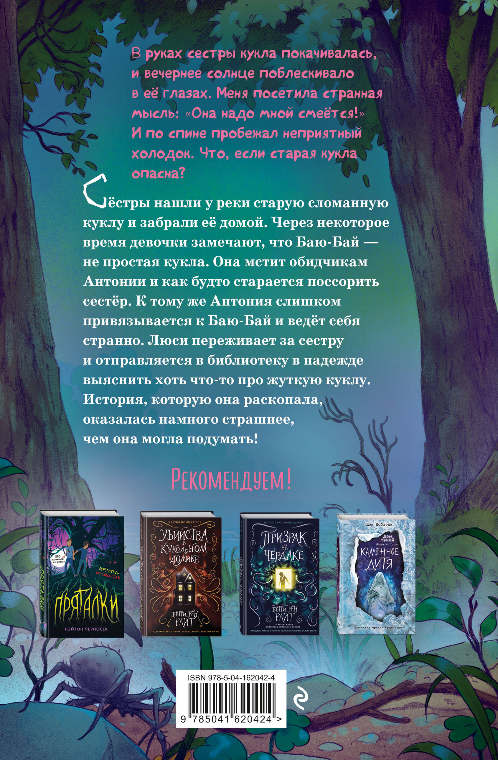 КУКЛЫ ПОМНЯТ ВСЁ... Две сестры находят на берегу старую куклу и берут её домой. Кто знает, как давно Баю-Бай пролежала там, на берегу? И какие мрачные секреты хранит?.. Когда кукла начинает жёстко мстить обидчикам девочек, они решают от неё избавиться, но это оказалось не так-то просто...| Издательство | ООО "Издательство "Эксмо" |