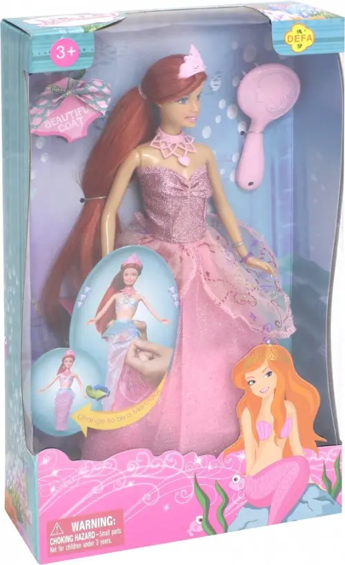 Очаровательная кукла в красивом бальном платье с пышной юбкой покорит сердце каждой девочки, а когда после волшебных манипуляций эта юбка превратится в русалочий хвост, детскому восторгу не будет предела.