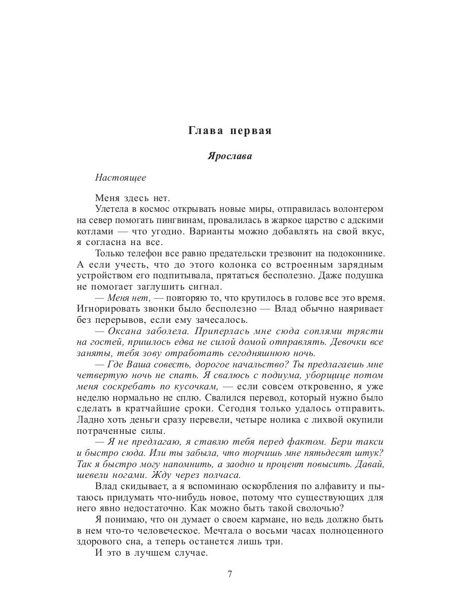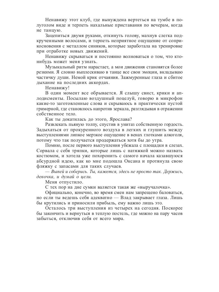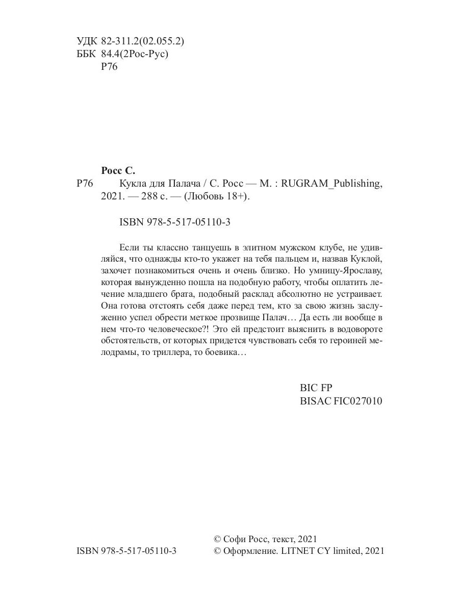 Если ты классно танцуешь в элитном мужском клубе, не удивляйся, что однажды кто-то укажет на тебя пальцем и, назвав Куклой, захочет познакомиться очень и очень близко. Но умницу-Ярославу, которая вынужденно пошла на подобную работу, чтобы оплатить лечение младшего брата, подобный расклад абсолютно не устраивает. Она готова отстоять себя даже перед тем, кто за свою жизнь заслуженно успел обрести меткое прозвище Палач… Да есть ли вообще в нем что-то человеческое?! Это ей предстоит выяснить в водовороте обстоятельств, от которых придется чувствовать себя то героиней мелодрамы, то триллера, то боевика…| Издательство | Т8 RUGRAM |