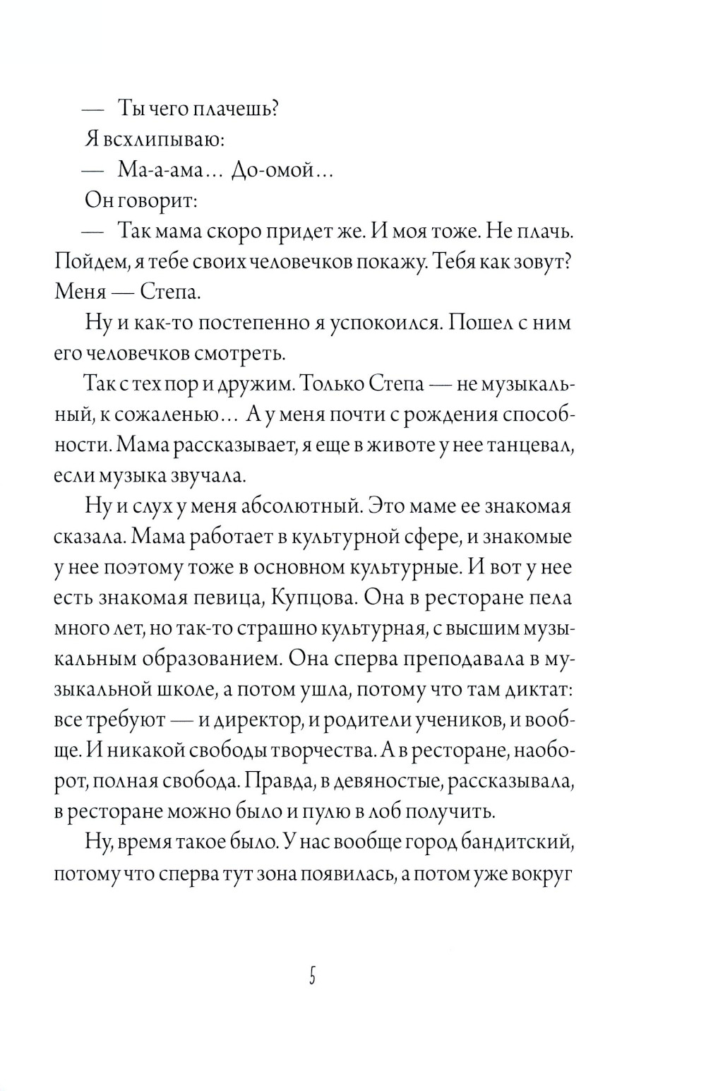У Кости абсолютный слух. Он учится в девятом классе, играет на балалайке в оркестре «Струны Севера» и собирается поступать в музыкальный колледж. А еще Костя - редкий случай нервности и чувствительности. Так говорит его мама. Эти качества, как ни странно, помогают подростку жить в городе, который потихоньку «умирает». Но они же и мешают. Однажды «Струны Севера» едут выступать в столицу края. Там Костя становится свидетелем мерзкого поступка, который совершили двое ребят из его же оркестра. Он испытывает настолько сильное нервное потрясение от пережитых эмоций, что серьезно заболевает... Что теперь лечить - душу или тело? Поможет ли Косте Снежана, в которую он влюблен и с которой они играют в оркестре? Или давно подаренный папой Пьеро - марионетка на ниточках - подскажет, как быть? Что или кто избавит Костю от болезни? И есть ли от нее вообще спасение?.. Дмитрий Сиротин рассказывает пронзительную историю о подростках, первой влюбленности, поиске себя и городе, полном истории и легенд, которые хранят его жители. Иначе и быть не может. Ведь автор пишет о родной Воркуте, где родился и начал свой творческий путь. Он работал в театре кукол, создавал сценарии для праздников, вел школьные театральные кружки. Позже началась писательская карьера. Рассказы и повести Дмитрия не раз попадали в шорт-листы конкурса «Книгуру», премии им. В. П. Крапивина, конкурса им. К. Чуковского. Художница Алина Федина, оформляя издание, исключительно чутко передала лиричный и хрупкий образ героя.| Издательство | ИД КомпасГид |