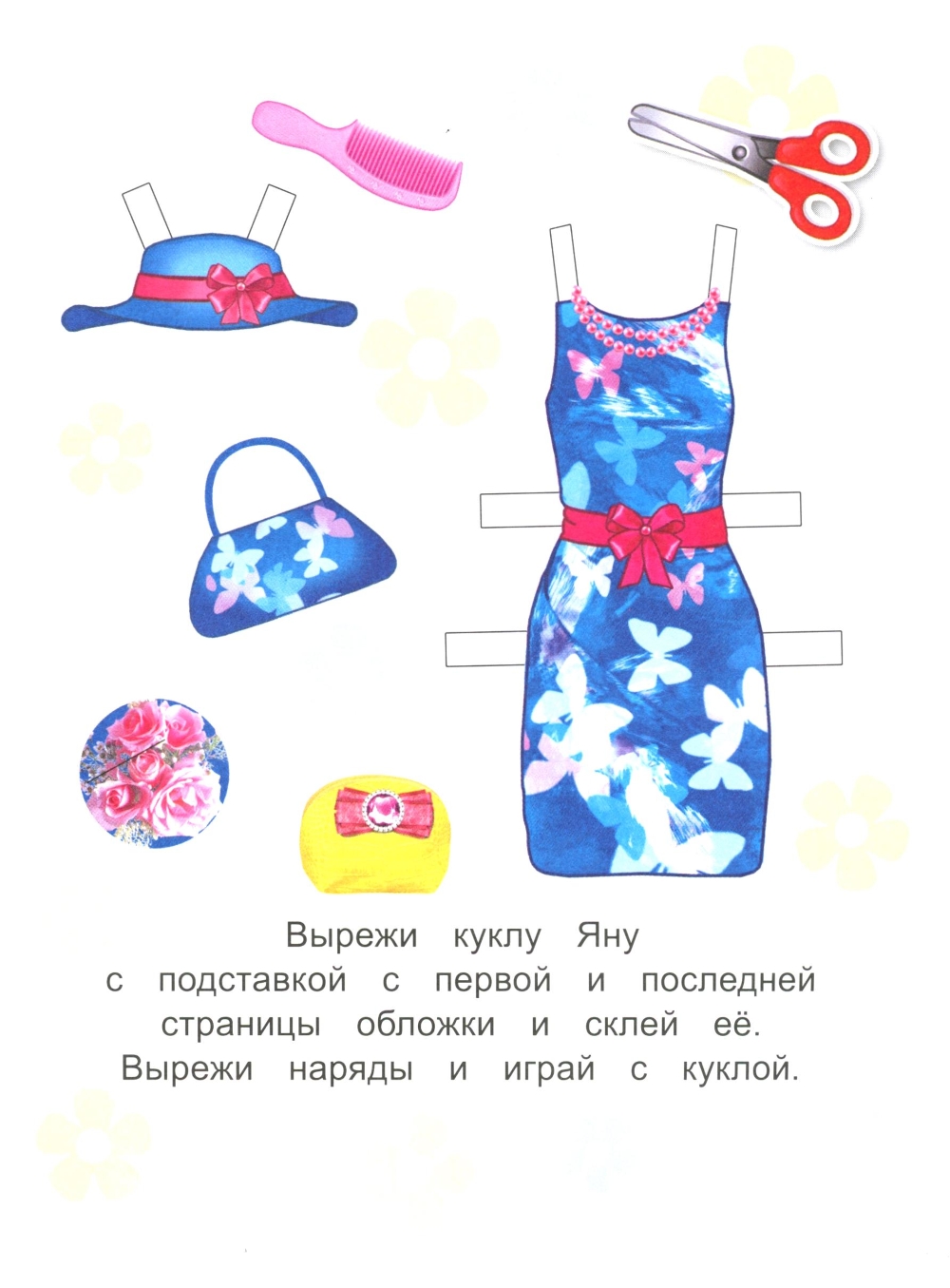 Вырежи куклу с подставкой с первой и последней страницы обложки и склей её. Вырежи наряды и играй с куклой.| Издательство | Алфея |