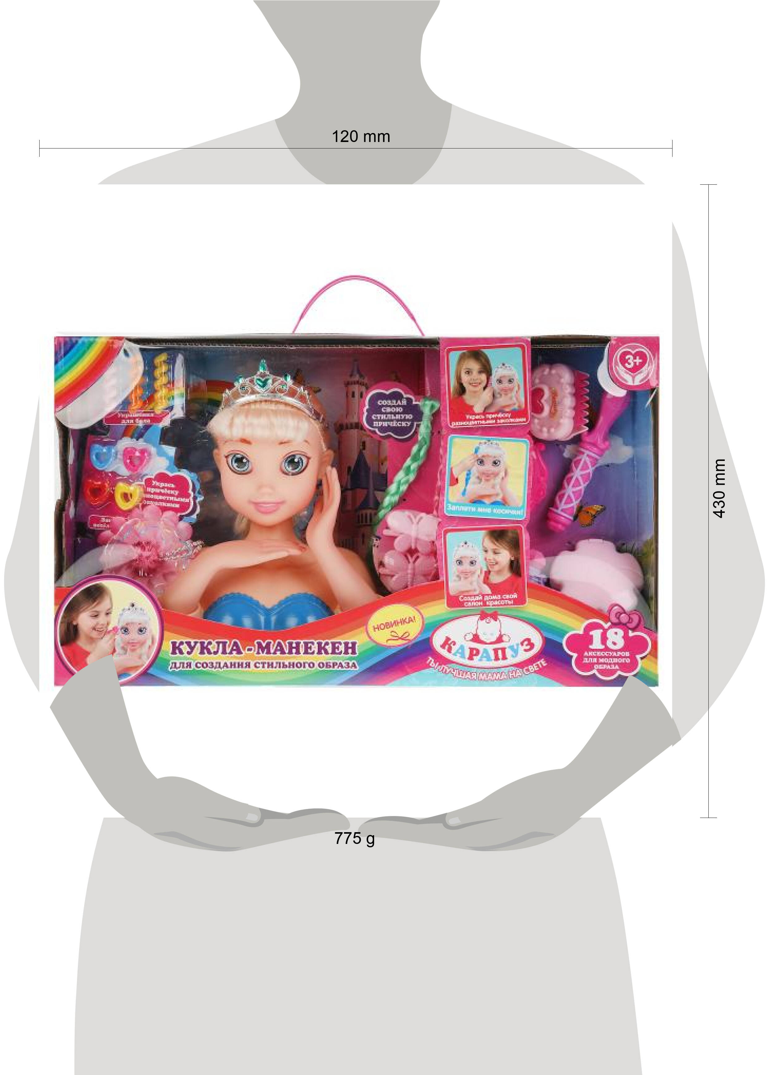 Аннотация: Кукла-манекен 18 см, с 18 аксессуарами для волос, в кор. КАРАПУЗ в кор.12шт