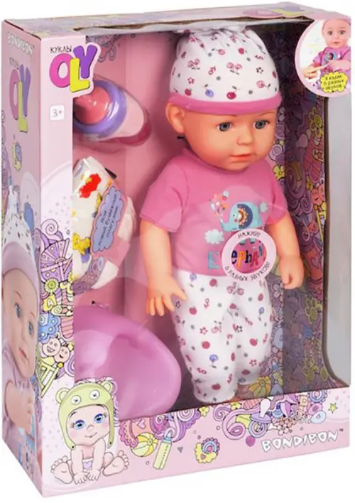Пупс OLY от Bondibon - это очаровательный малыш, который непременно завоюет сердце любой девочки. У него забавная мордашка и милый костюмчик, который можно снимать и надевать. У пупсика двигаются ручки, ножки, а еще он умеет пить из бутылочки и ходить на горшок! Когда пупсик недоволен, он плачет, а еще он может издавать другие звуки и даже произносить слова! В комплекте с пупсом Вы найдете бутылочку для кормления, горшочек и памперс. Питание звукового механизма - 3*AG13 (включены в комплект).