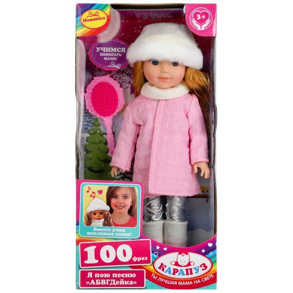 Кукла озвуч. АБВГДЙКА песня Катерина 38 см, озвуч.,в зимнем костюме, расческа КАРАПУЗ в кор.24шт