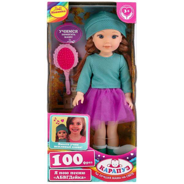 Кукла озвуч АБВГДЙКА песня Катерина 38см, в кэжуал, 100 фраз, акс,кор КАРАПУЗ в кор.24шт
