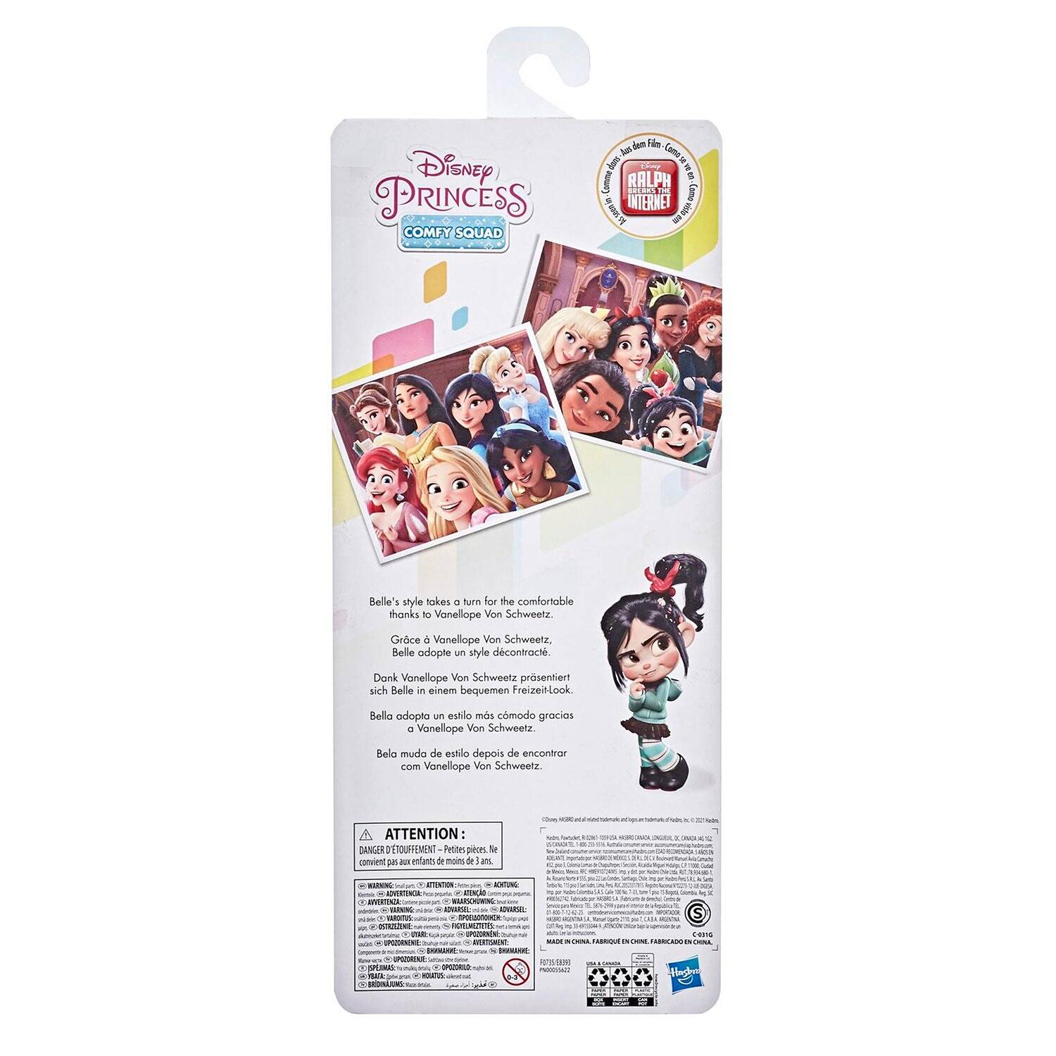В мультфильме "Ральф против интернета" Ванилопа фон Кекс помогает диснеевским принцессам подобрать удобную одежду. Кукла Белль, вдохновленная аватаром принцессы из диснеевского мультфильма, одета в удобную повседневную одежду с современным декором. У Белль красивые длинные волосы, а ее наряд состоит из топа с надписью, джинсовой юбки и кроссовок. С коллекцией кукол Comfy Squad ребенок сможет представить классических принцесс Дисней в современном мире. В серию также входят такие персонажи, как Аврора, Жасмин, Тиана, Золушка и другие очаровательные героини любимых мультфильмов. Каждая кукла продается отдельно.| Издательство | Хасбро Раша ООО |