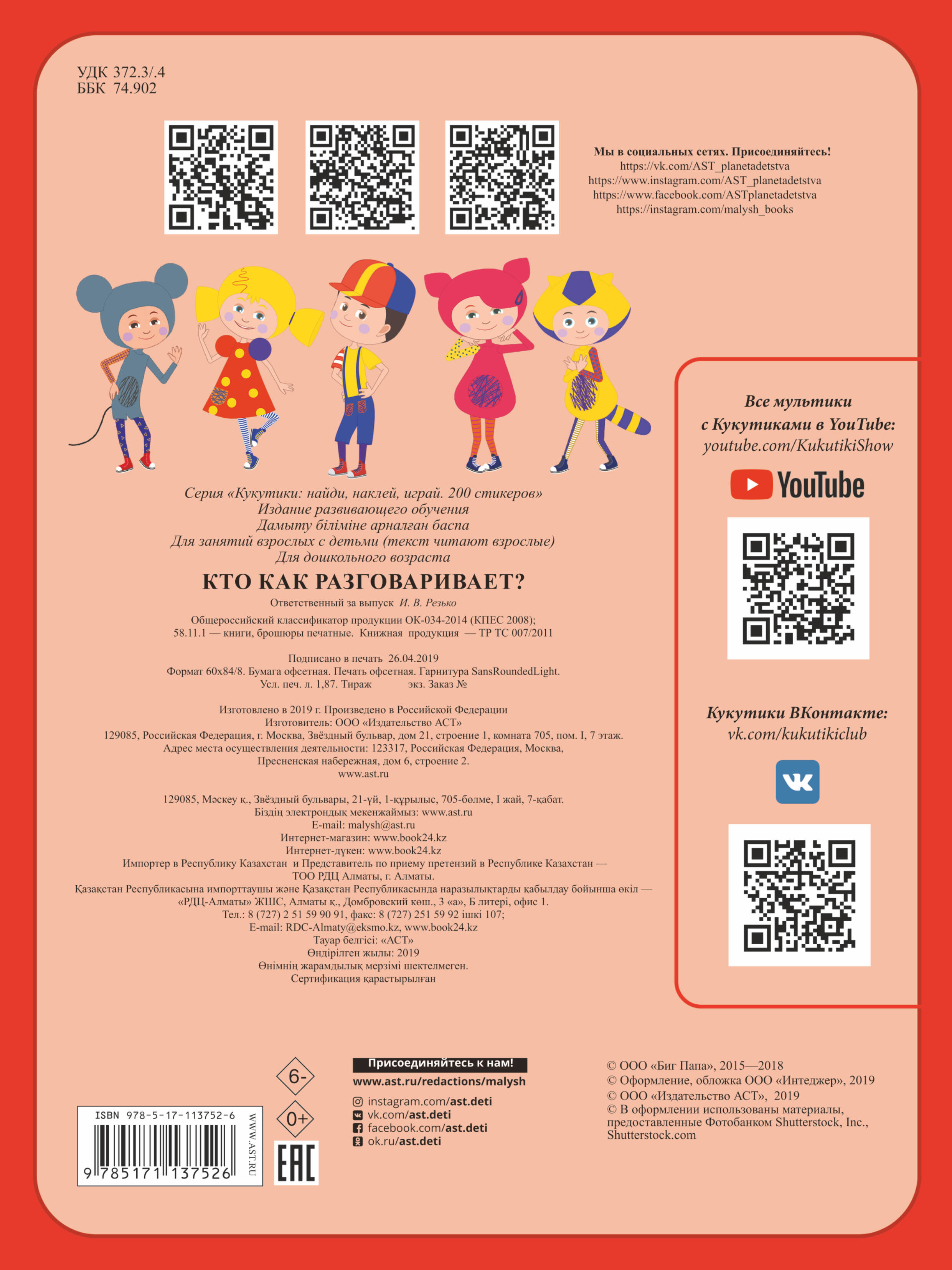 Весёлая команда Кукутиков - Мышонок, Поросенок, Енот и Мальчик с Девочкой - приглашает дошколят на прогулку. По ходу дела нужно будет вклеивать пропущенные буквы в слова, писать простые слоги, повторять навыки чтения и счёта, искать и вклеивать на нужные места пропавших животных и много чего ещё. Оптимальный возраст для выполнения таких заданий - 4-6 лет.