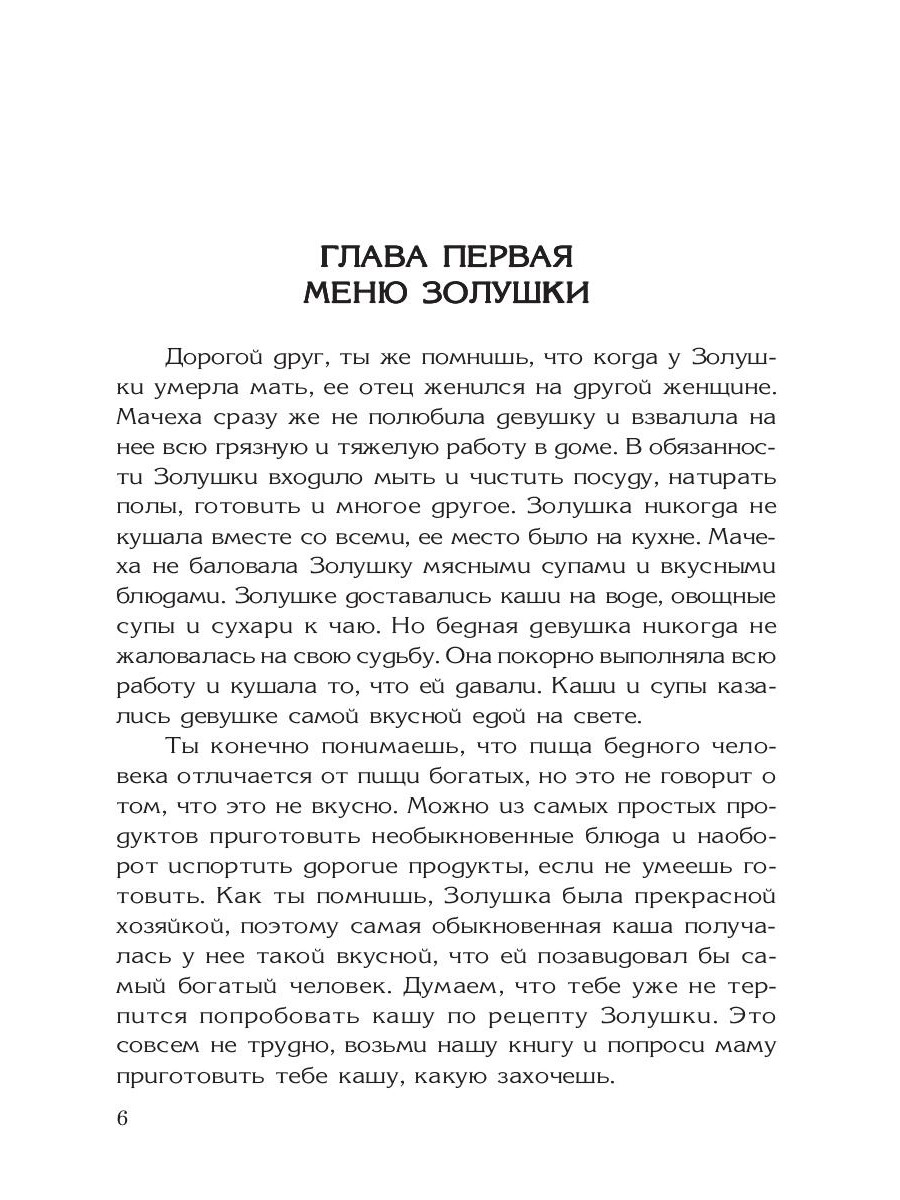 В этой книге вы сможете открыть для себя что-то новое, вспомнить сказочных героев, научится готовить и немного шить. Ты в любой момент можешь ее открыть и приготовить по рецепту Золушки любое блюдо, которое только захочешь. Желаем тебе успеха и надеемся на то, что нашу книгу ты прочитаешь от начала до конца.| Издательство | Т8 RUGRAM |