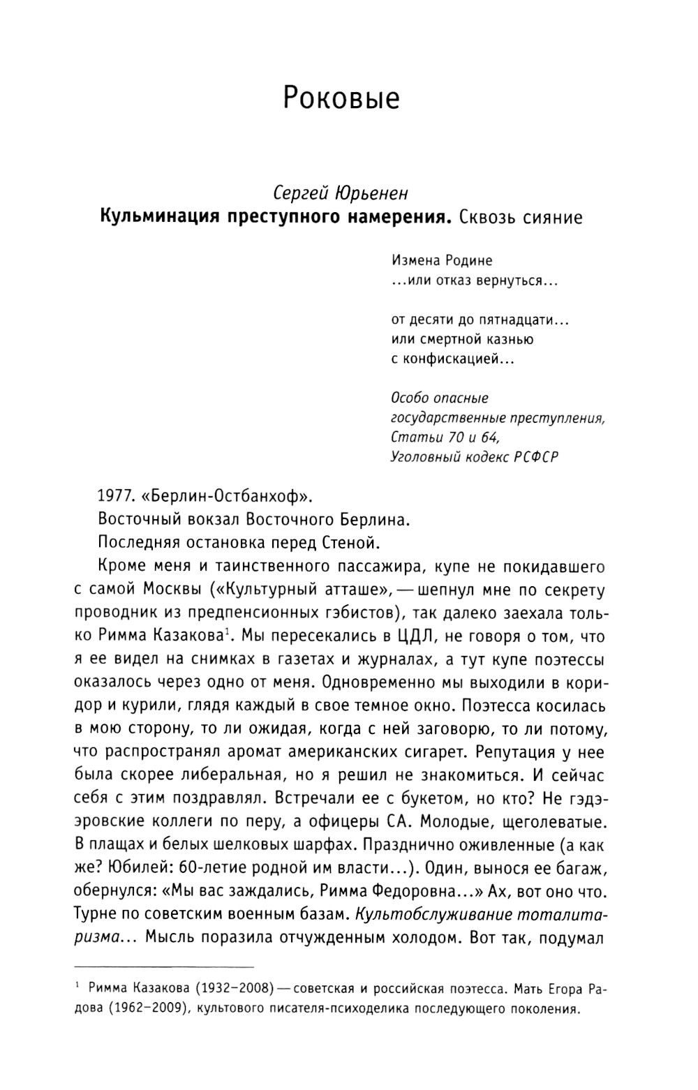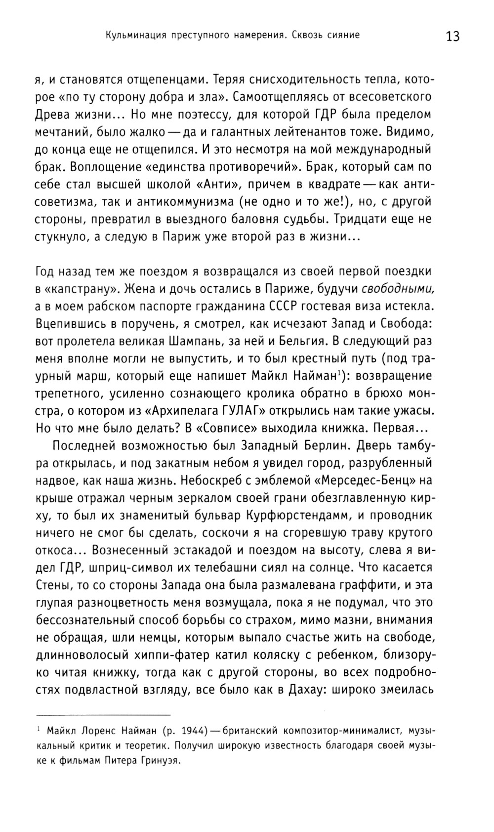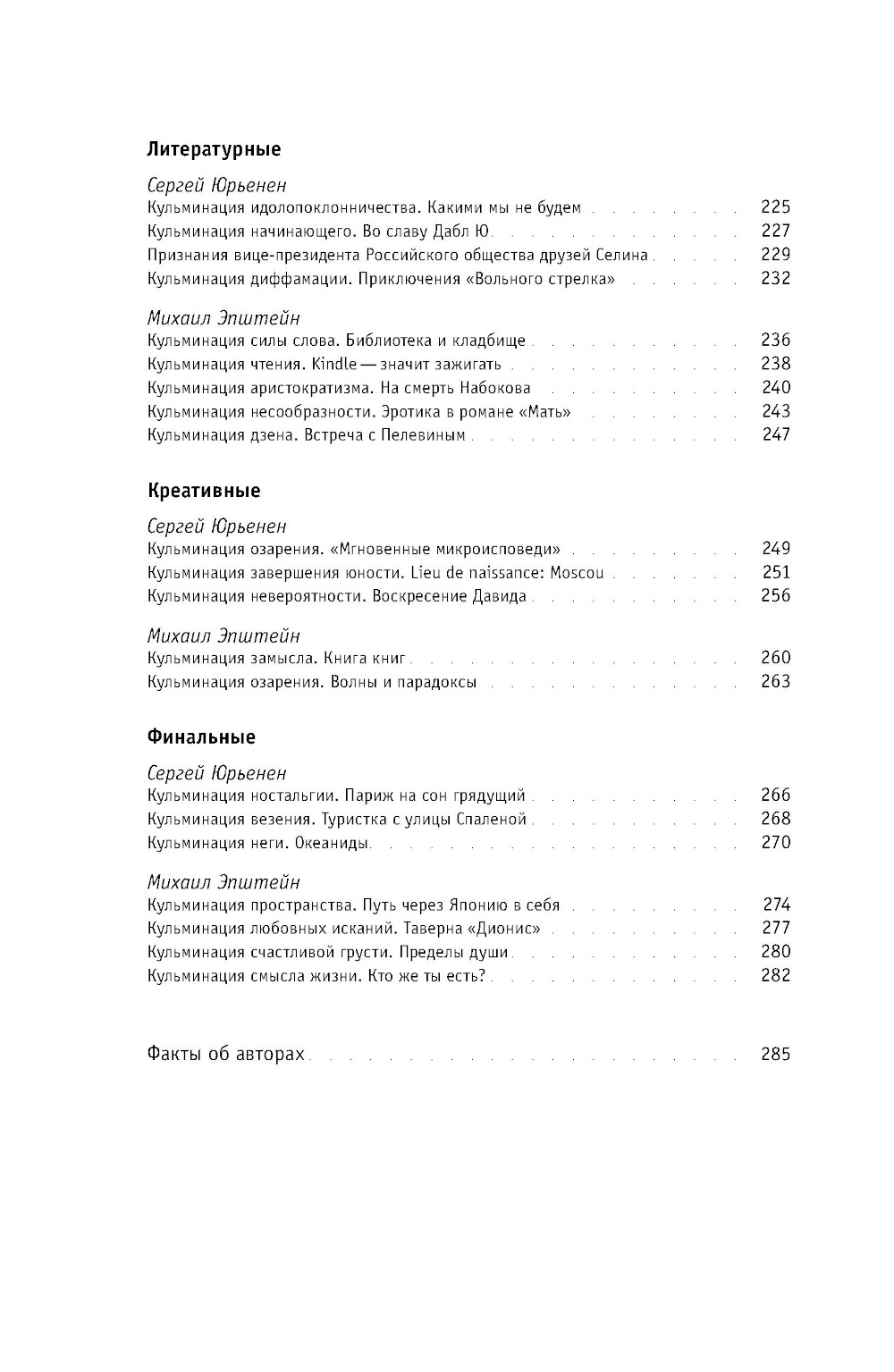 Эта книга - о высших точках опыта, «кульминациях», когда почти мгновенно постигаешь себя, общество, человеческую природу, явленную на гранях, на сломах. Михаил Эпштейн и Сергей Юрьенен - друзья с молодости - размышляют о поворотных моментах своей жизни и делятся опытом сильнейших переживаний. В книгу вошло около девяноста небольших историй на разные темы - от любовно-романтических и семейных до социальных, религиозных и творческих. Кульминации, о которых пишут авторы, возникают на скрещении личных сюжетов с событиями большой истории и общечеловеческими духовными проблемами, которые вдруг получают конкретное воплощение в пережитых ими экстремальных ситуациях. Рассказчики надеются, что эта уникальная по остроте самоанализа книга поможет читателям лучше осознать кульминационные моменты собственной жизни. Михаил Эпштейн - философ, культуролог и литературовед, лингвист, эссеист. Автор книг «Ирония идеала» и «Проективный словарь гуманитарных наук», вышедших в издательстве «НЛО». Сергей Юрьенен - прозаик, переводчик, журналист, издатель, автор публикаций в журнале «Новое литературное обозрение».| Издательство | Новое литературное обозрение |