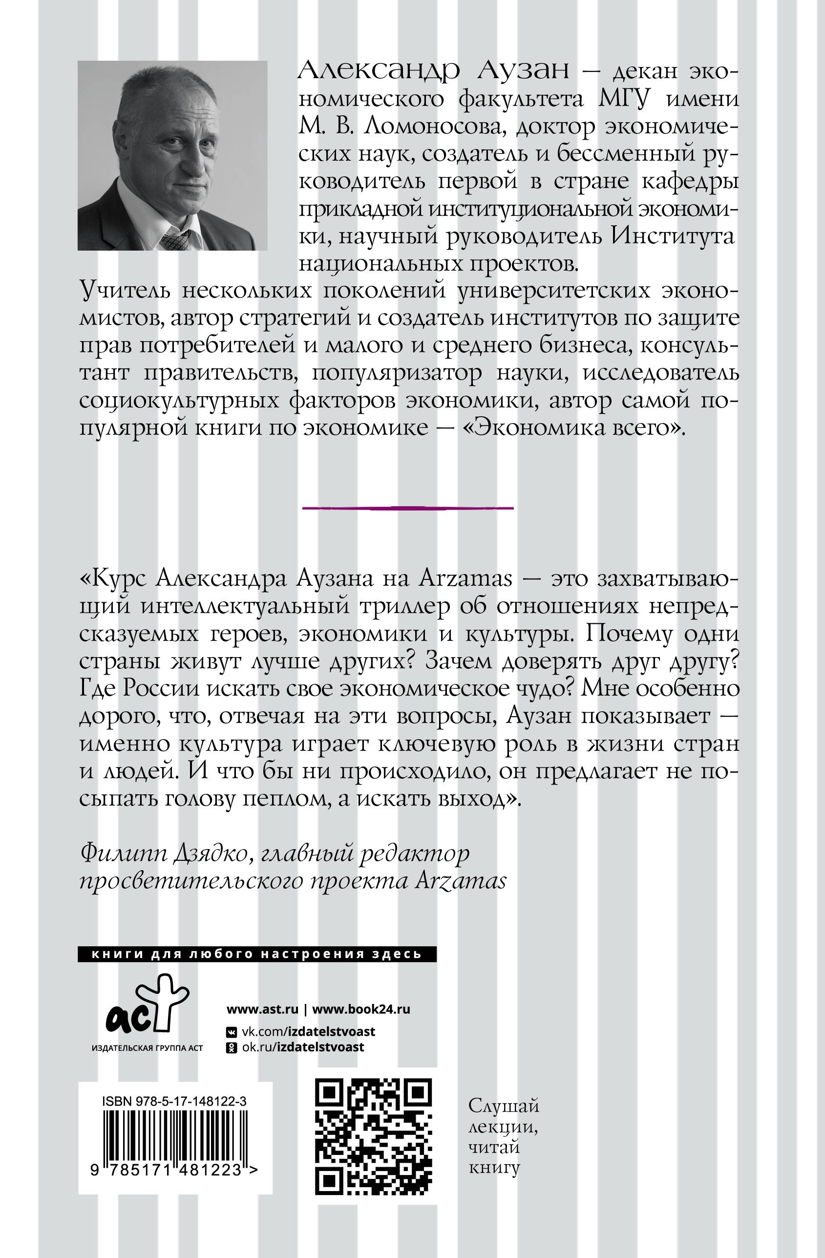 В основу этой книги лег курс общедоступных лекций, прочитанный деканом экономического факультета МГУ им. М.В. Ломоносова Александром Аузаном на просветительском интернет-портале Arzamas. Социокультурная экономика - новое перспективное направление в экономической науке. На благосостояние стран воздействуют не только технологии, наличие или отсутствие ресурсов, но и культура - ценности и поведенческие установки, которыми руководствуются люди. Каждая страна имеет свой культурный код, сложившийся под влиянием религии, истории, языка, климата, агротехники и др.